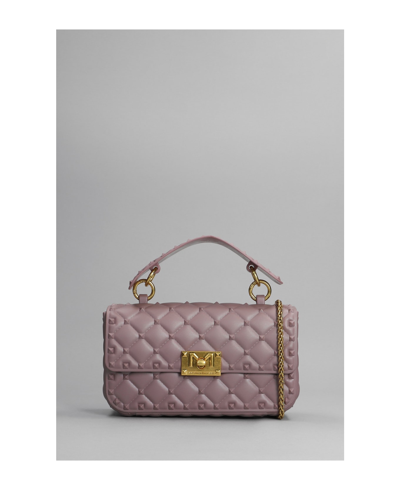Flat Rock Lipa S Hand bag in powder rubber/plasic, Width 205 mm, handle, shoulder strap, push- lock fastening, gold hardware, studs detail, Height 110 mm, Width 205 mm, 100% rubber , Made in Italy