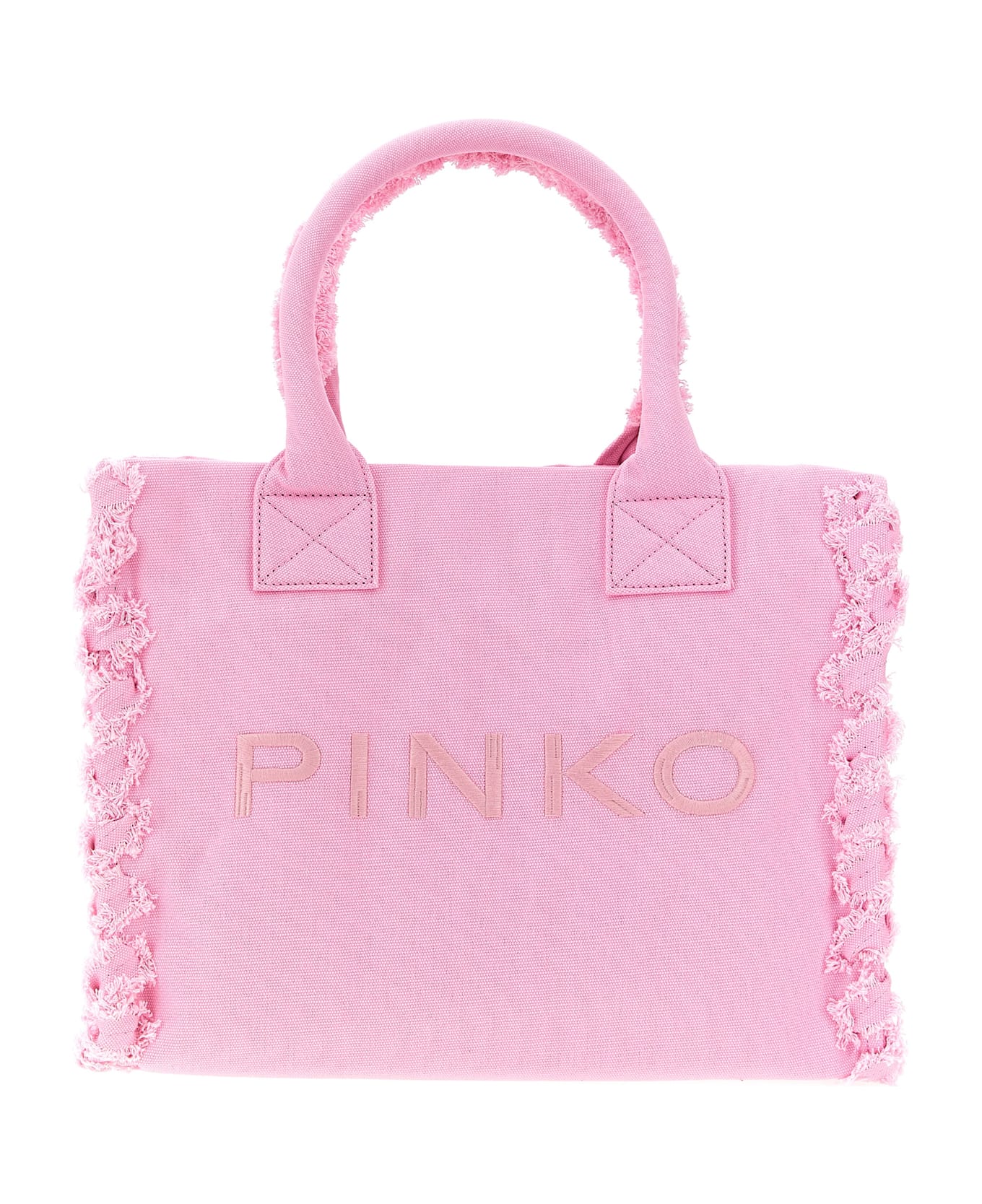 Medium 'Beach' cotton canvas shopping bag with side threads and fringes, tone-on-tone logo embroidery on the front, top zip closure, double fixed handle, cotton lining. Composition: 100% cotton