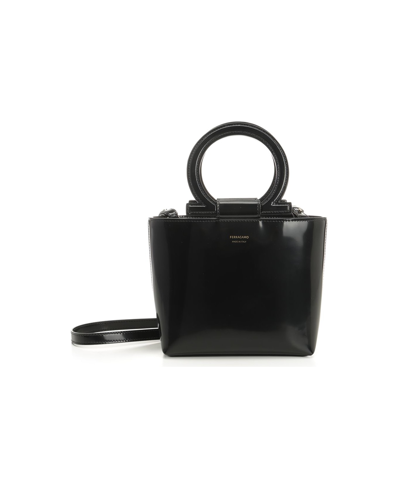 Geometric lines, macro Gancini handle. Bridge and button closure, card or document slot, adjustable and removable shoulder strap. Composition: 100%CALF LAMB LINING Composition: 100% Calf