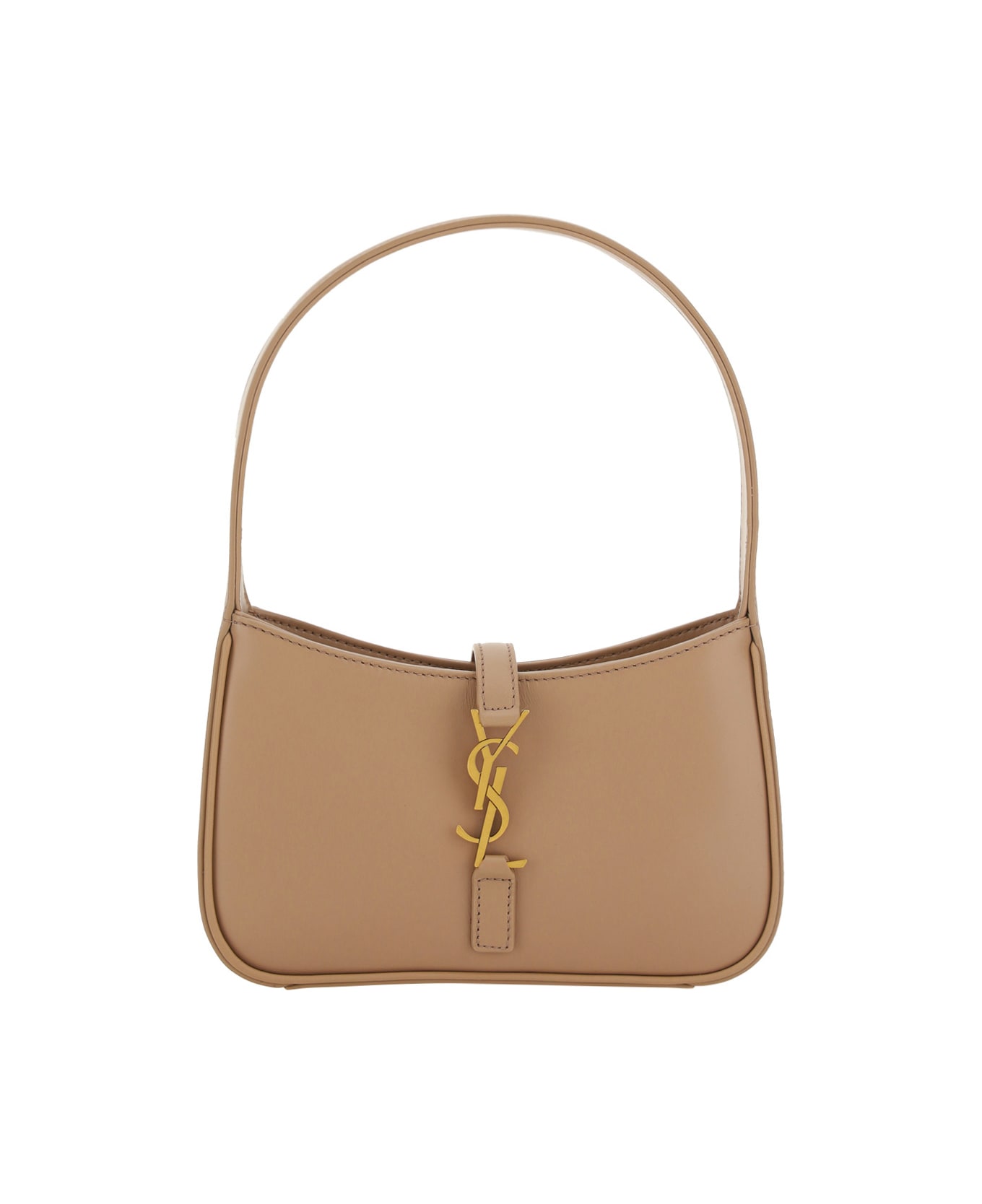 Calfskin Mini Hobo Shoulder Bag By Saint Laurent, Flat Top Leather Shoulder Strap, Interlocking Front Closure With Iconic Gold-plated Brand Logo Plaque, Interior Welt Pocket. composition: 100% % Calf Leather Bos Taurus