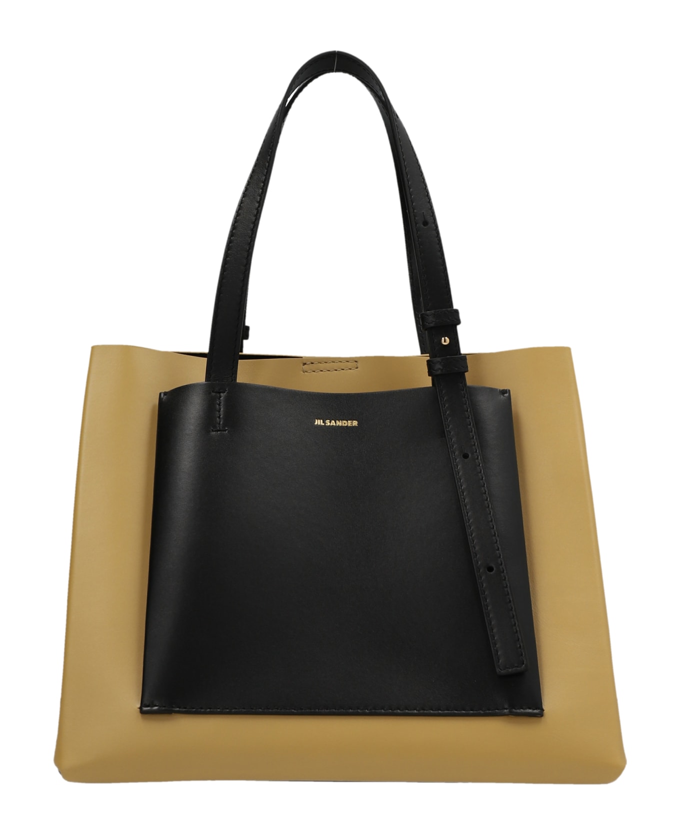 'Ombra' bi-color leather handbag with magnetic closure, double handle and external pockets.