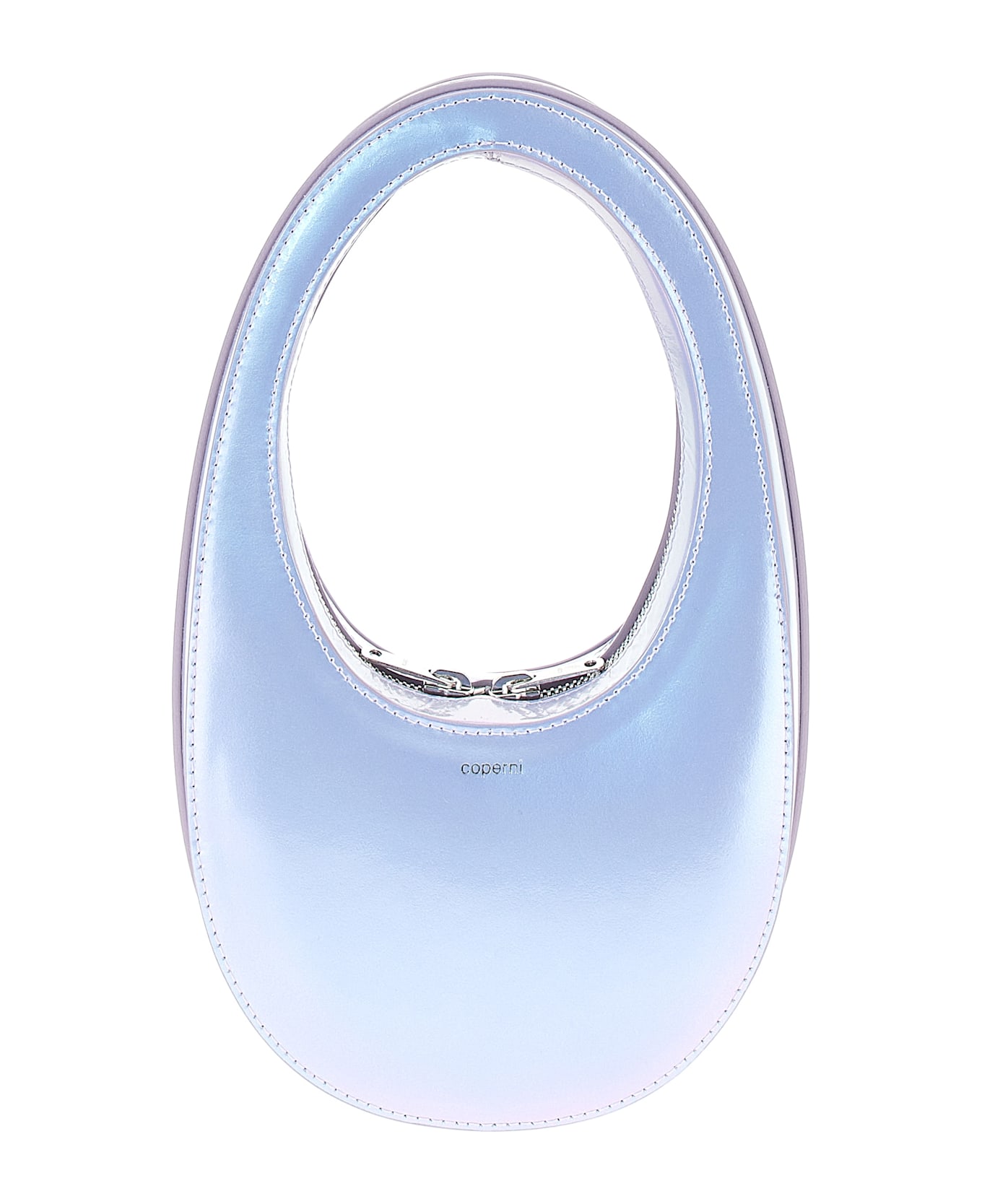 'Pearlised Mini Swipe Bag' pearl leather handbag with zip closure.
