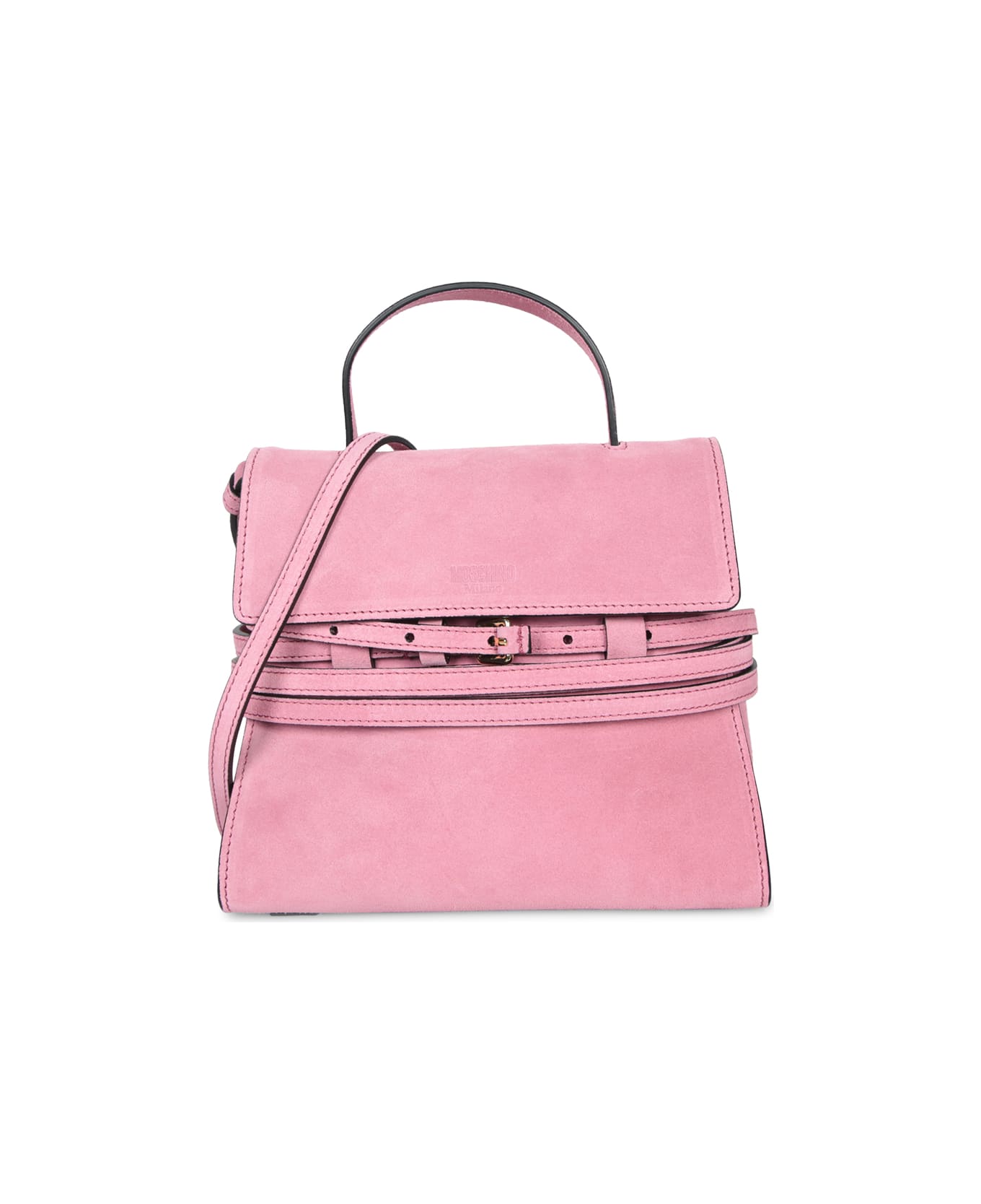 Elegance and innovation come together in this Moschino pink suede bag. Featuring a sophisticated design with strap details, it's perfect for adding a touch of class to any outfit. Equipped with an adjustable strap, it offers versatility and style.