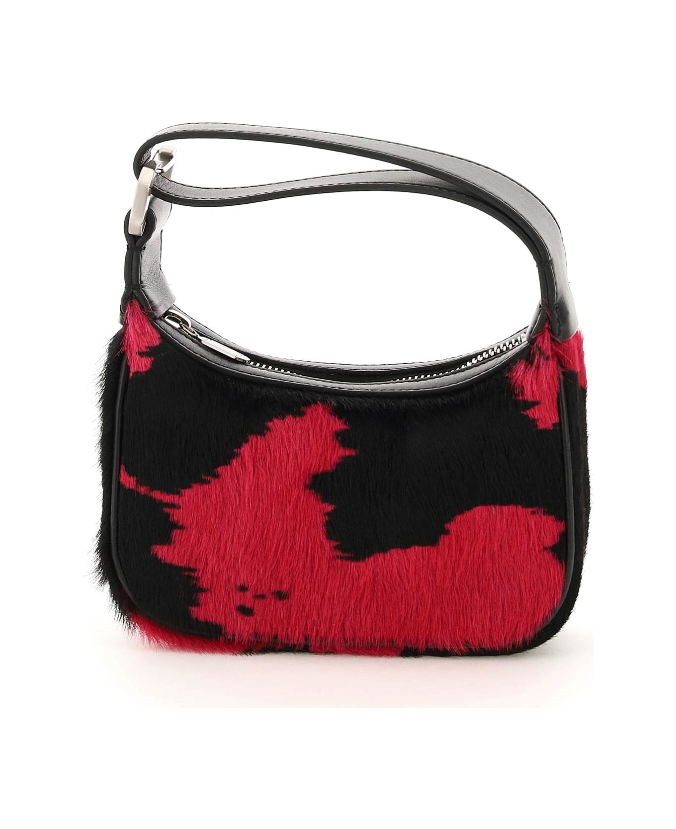 Moonbag Mini bag by Eéra in ponyskin-effect calf leather with cow print. Single top handle in smooth leather enriched with the iconic logoed C-shaped snap hook, top zip closure and suede leather lining. Metalware in silver-finished Ecobrass. Print placement can vary.