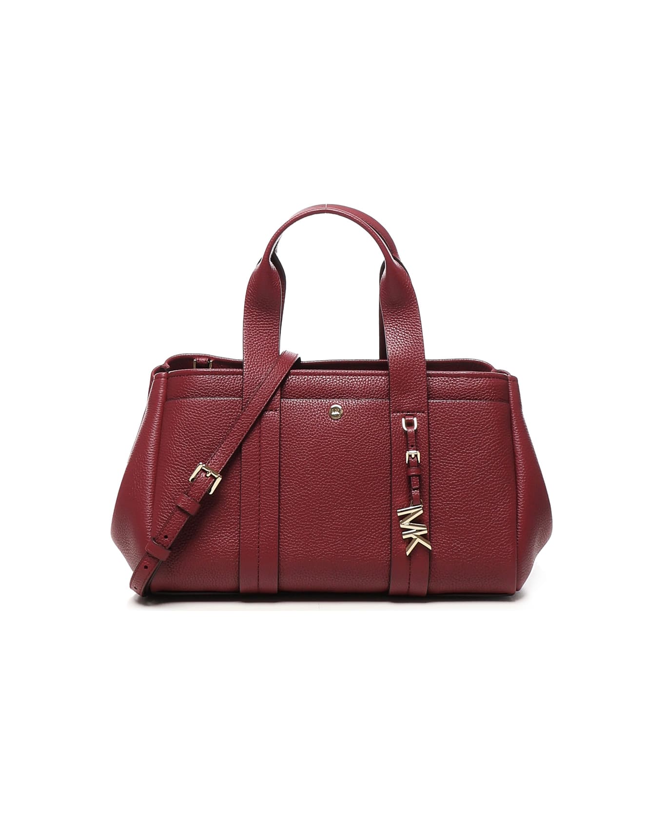 -Made of hammered leather -Zip closure -Adjustable shoulder strap -Back slip pocket -Dimensions: 18. 4 x 19 x 31. 1 cm -Color: Bordeaux