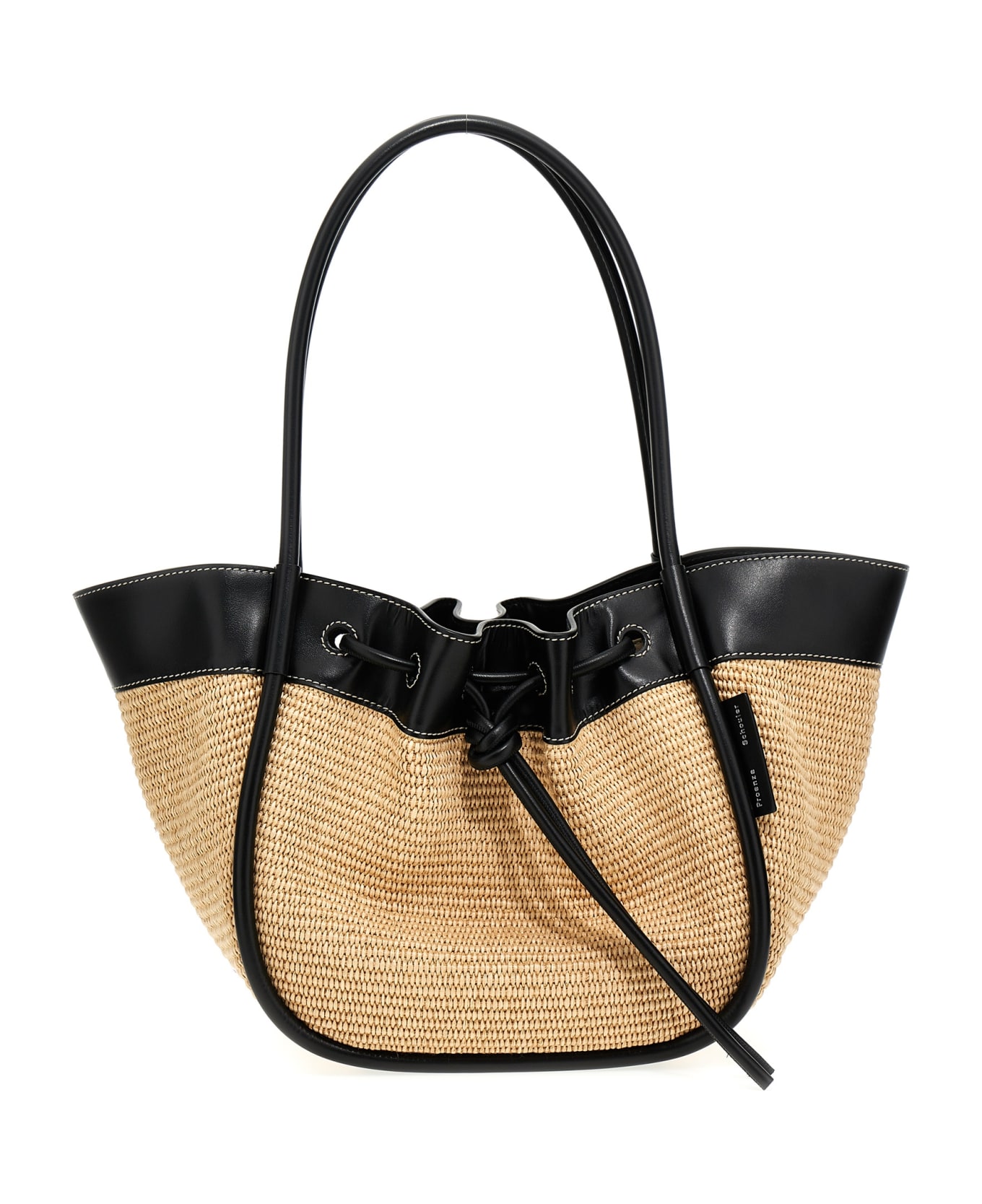 Raffia Ruched' raffia shopping bag with details, double leather handle and a drawstring closure.