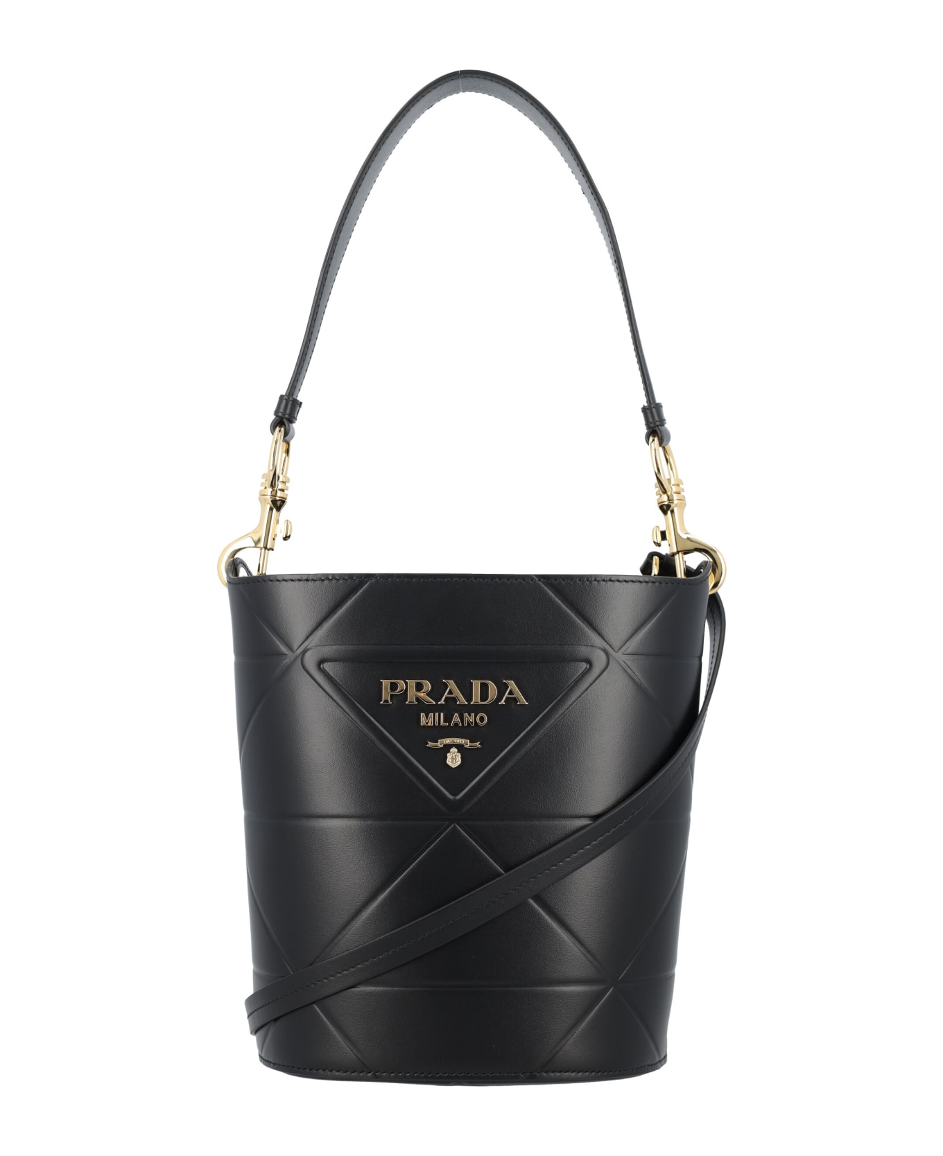 Symbole Leather Bucket Bag By Prada. Featuring: