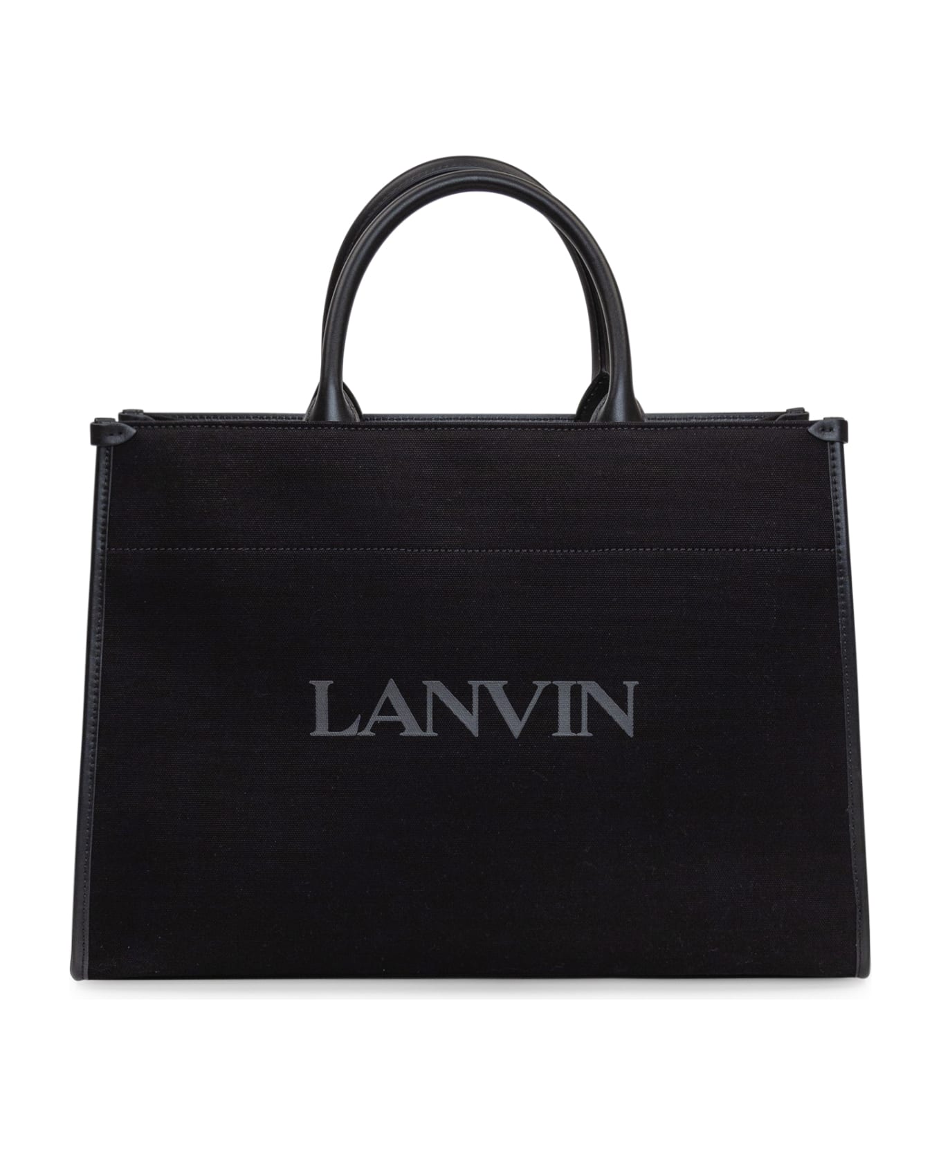 Black tote bag. Two handles. Adjustable and removable shoulder strap. Inner clutch bag with zip. Logo on the front. Composition: Outside:, 100% Cotton Finishing:, 100% Calfskin
