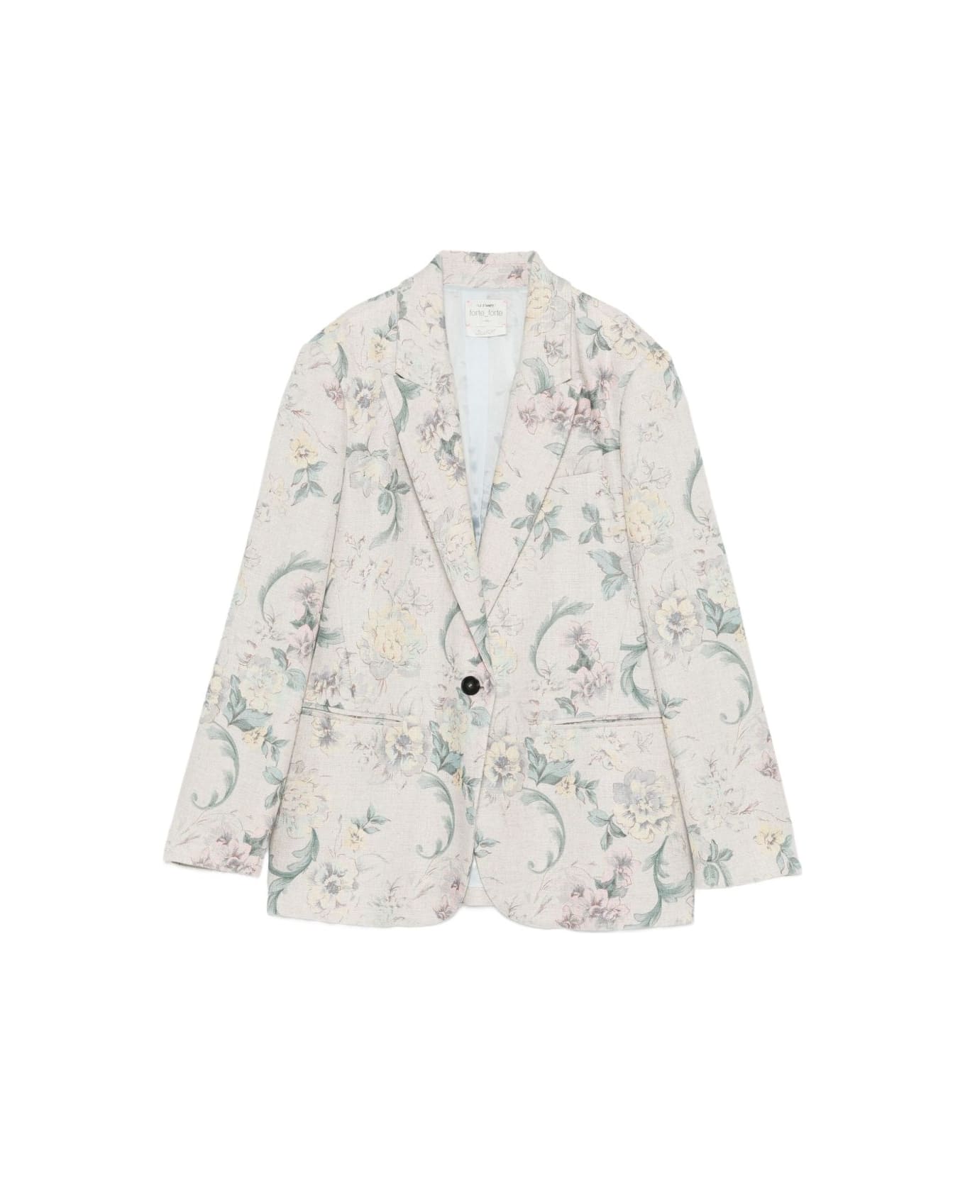 neutrals floral print single-breasted button fastening notched lapels long sleeves