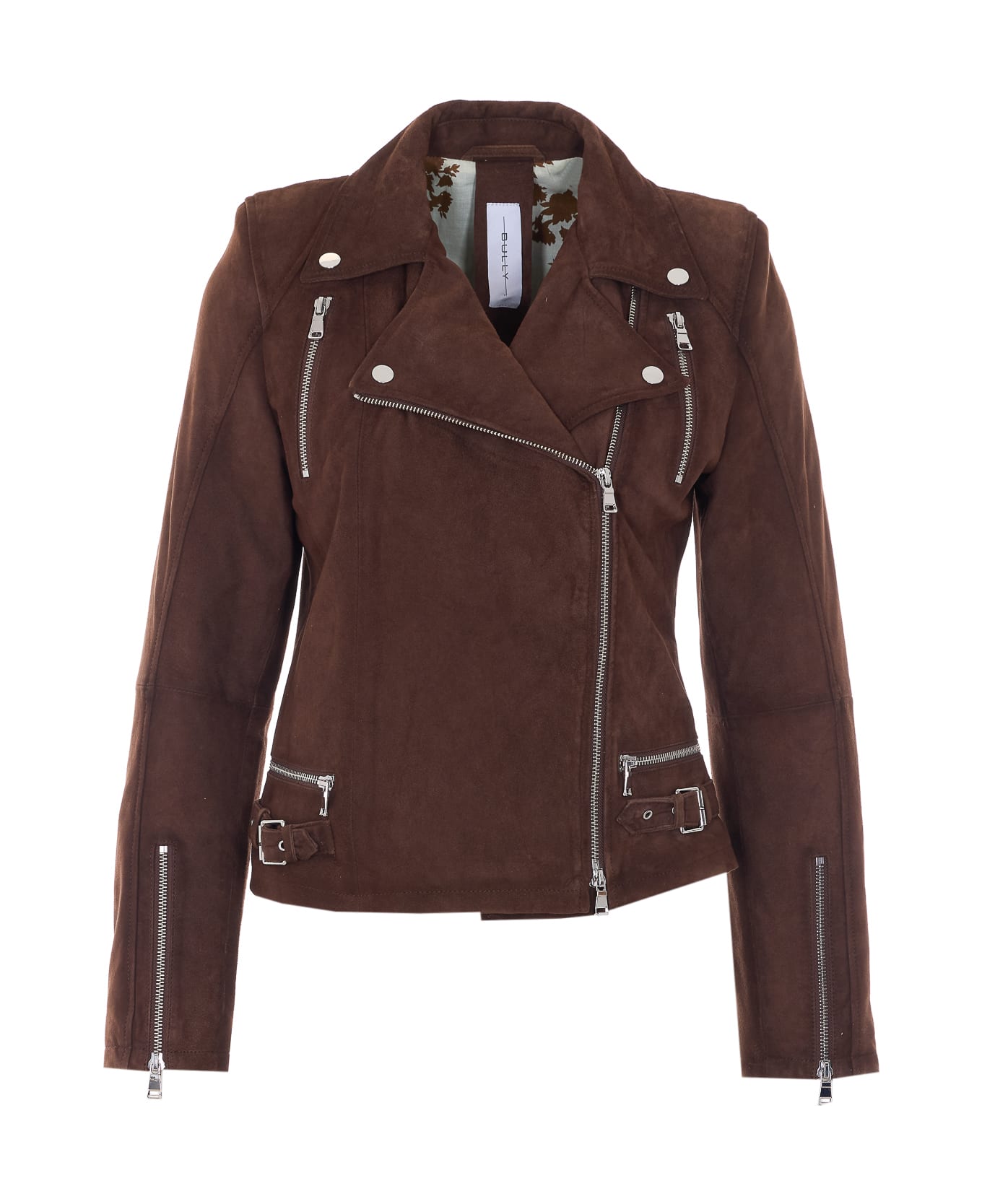 Bully brown suede jacket with frontal buttons closure, long sleeves, belt detail, reinforced shoulder, long sleeves, zip detail on cuffs Composition: 100% Genuine Leather, 100% Cotton, 100% Polyester