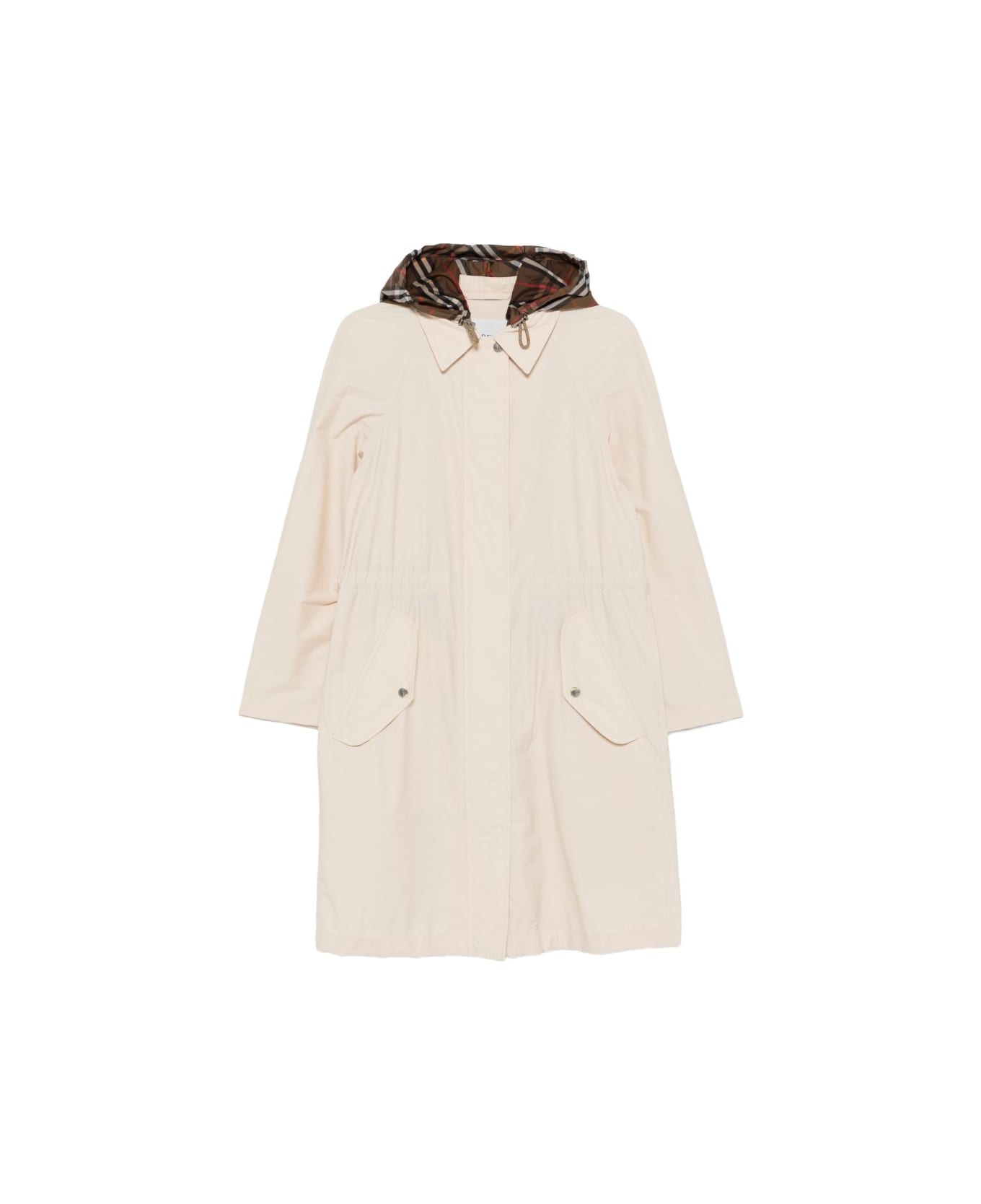 beige check print hood front flap pockets long sleeves drawstring waist Composition: 92% Polyamide, 8% Elastane