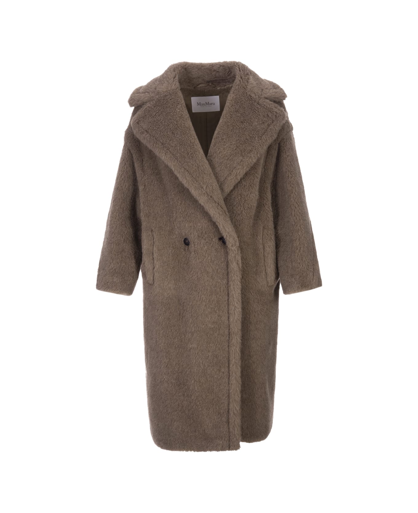 New composition for Teddy Bear coat by Max Mara made for winter 2023 in alpaca and cashmere on a silk base, in natural cashmere colors. Special inner jacquard lining with brocade pattern. Length 110 cm.