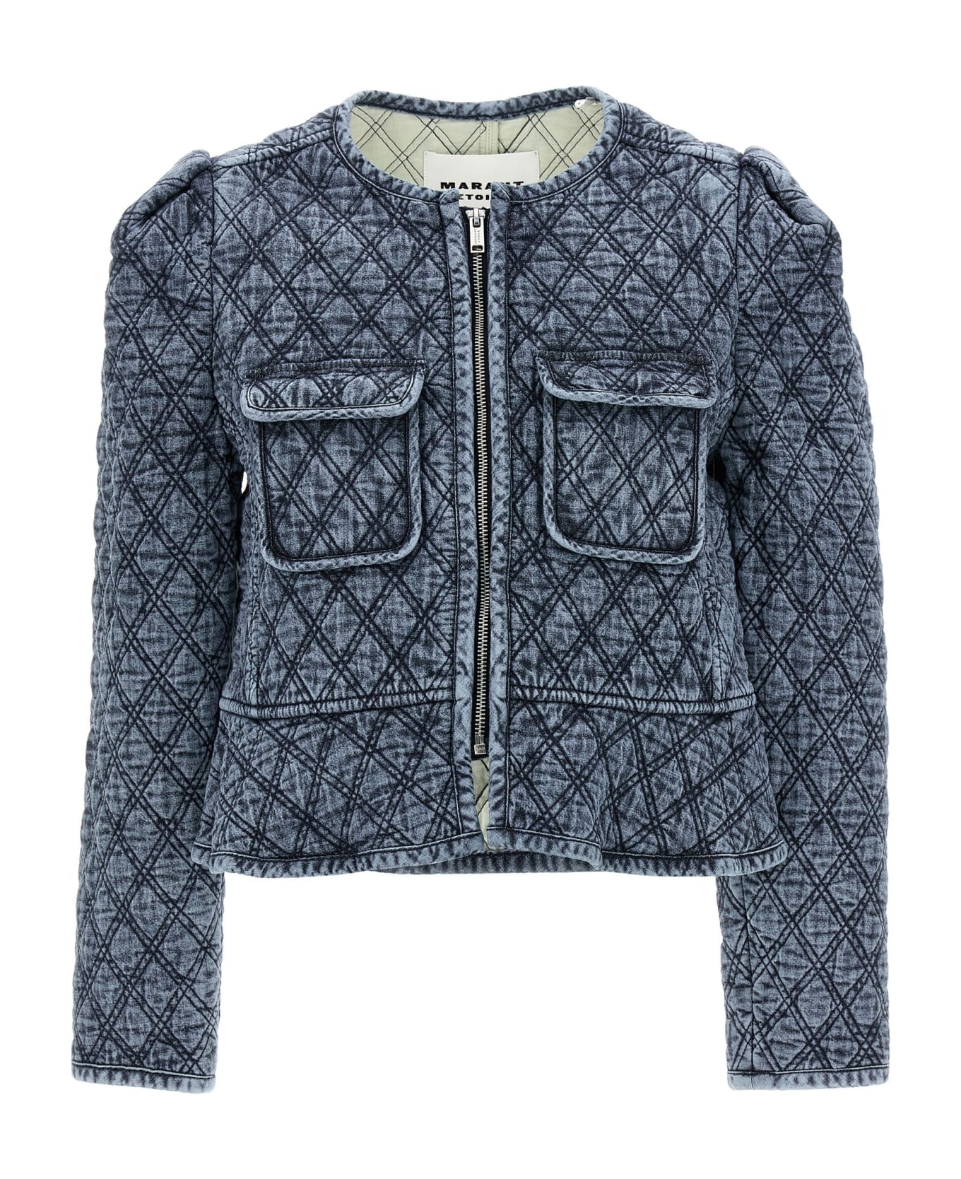 'Deliona' jacket in light quilted-effect denim with short style with slightly puff sleeves, zip closure and double chest pocket.