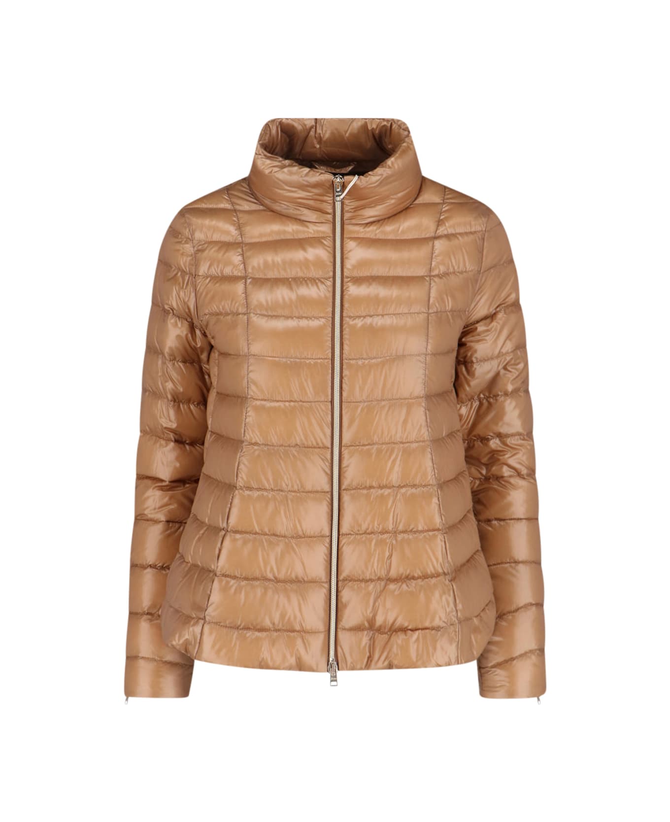 Herno padded down jacket in light brown fabric with high neck, zip closure, long sleeves, straight flared hem. Composition: 100% Polyamide