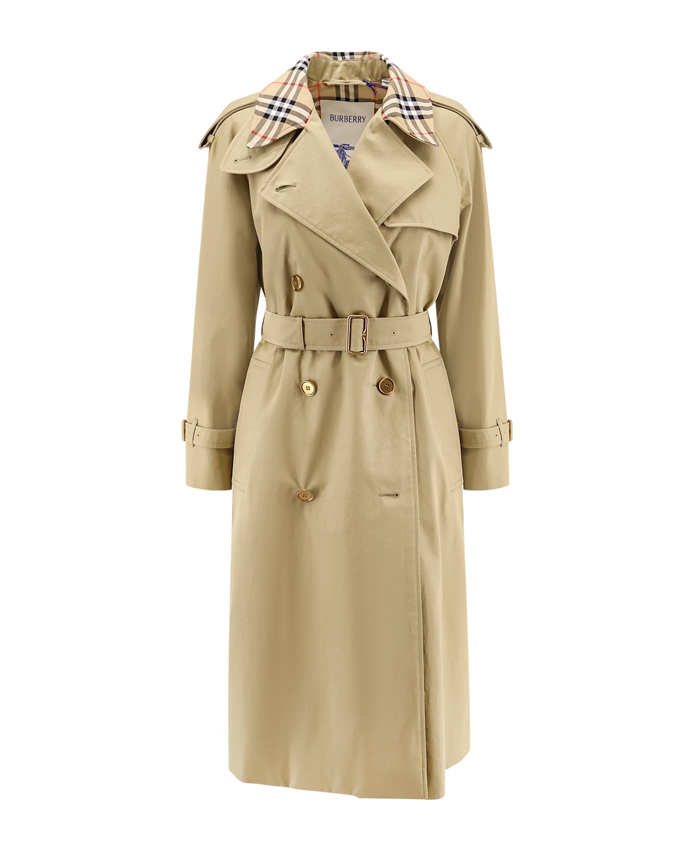 Double-breasted with buttons Adjustable belt with metal buckle Double pocket on the front Traditional Check lining 70% organic cotton 30% cotton Lining: 100% cotton SKU: 8111157C2981