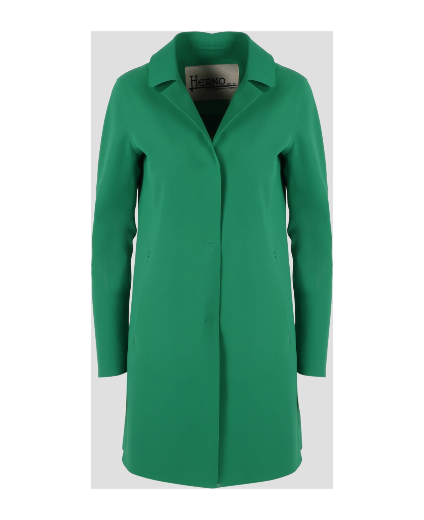 Herno trench coat , in stretch jersey with laser cut edges. - SS23 - Regular fit - Pointed collar - Concealed press studs closure - Side pockets - Made in Romania - 72% Polyamide, 28% Elastane
