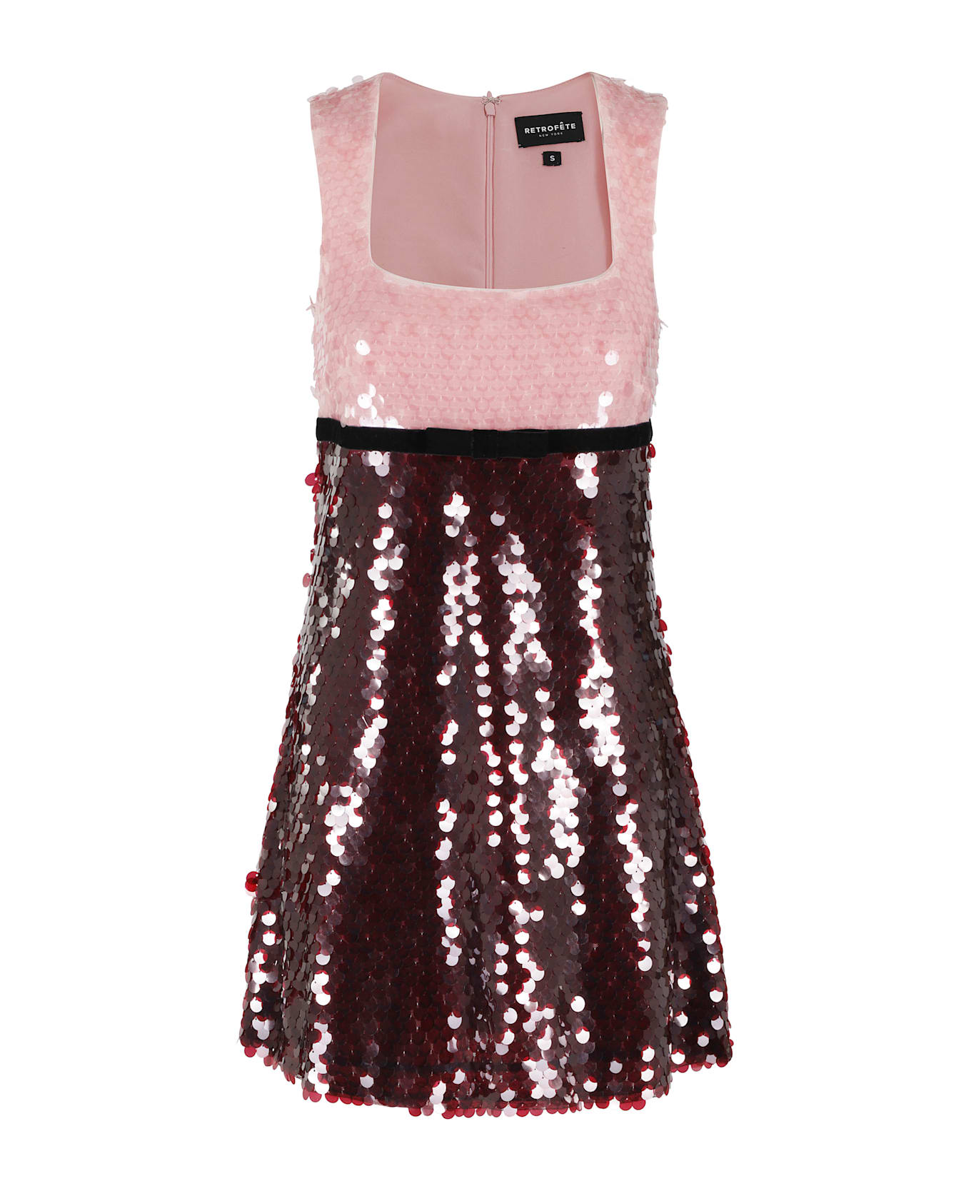 Dress - Retrofete - Amethyst color - Round neckline - Two-tone sequin fabric - Back zipper closure - Velvet waistband with bow - Mini length