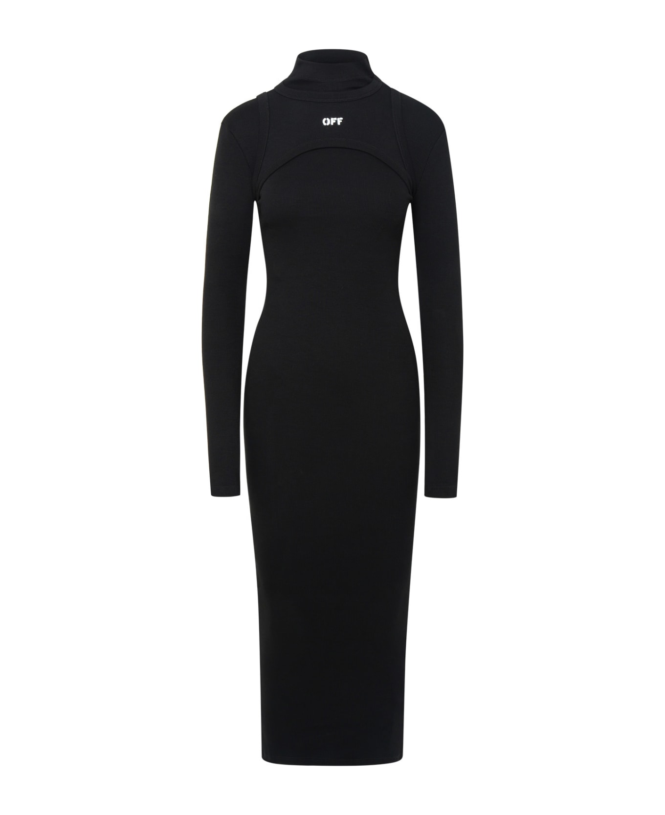 Maxi dress with stretch fit, micro ribbed crew neck, logo on the front