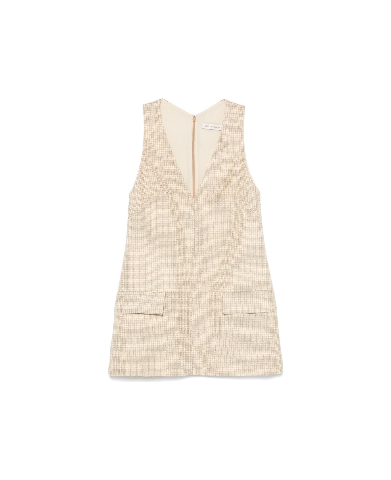 light beige concealed rear hook and zip fastening V-neck sleeveless two side flap pockets