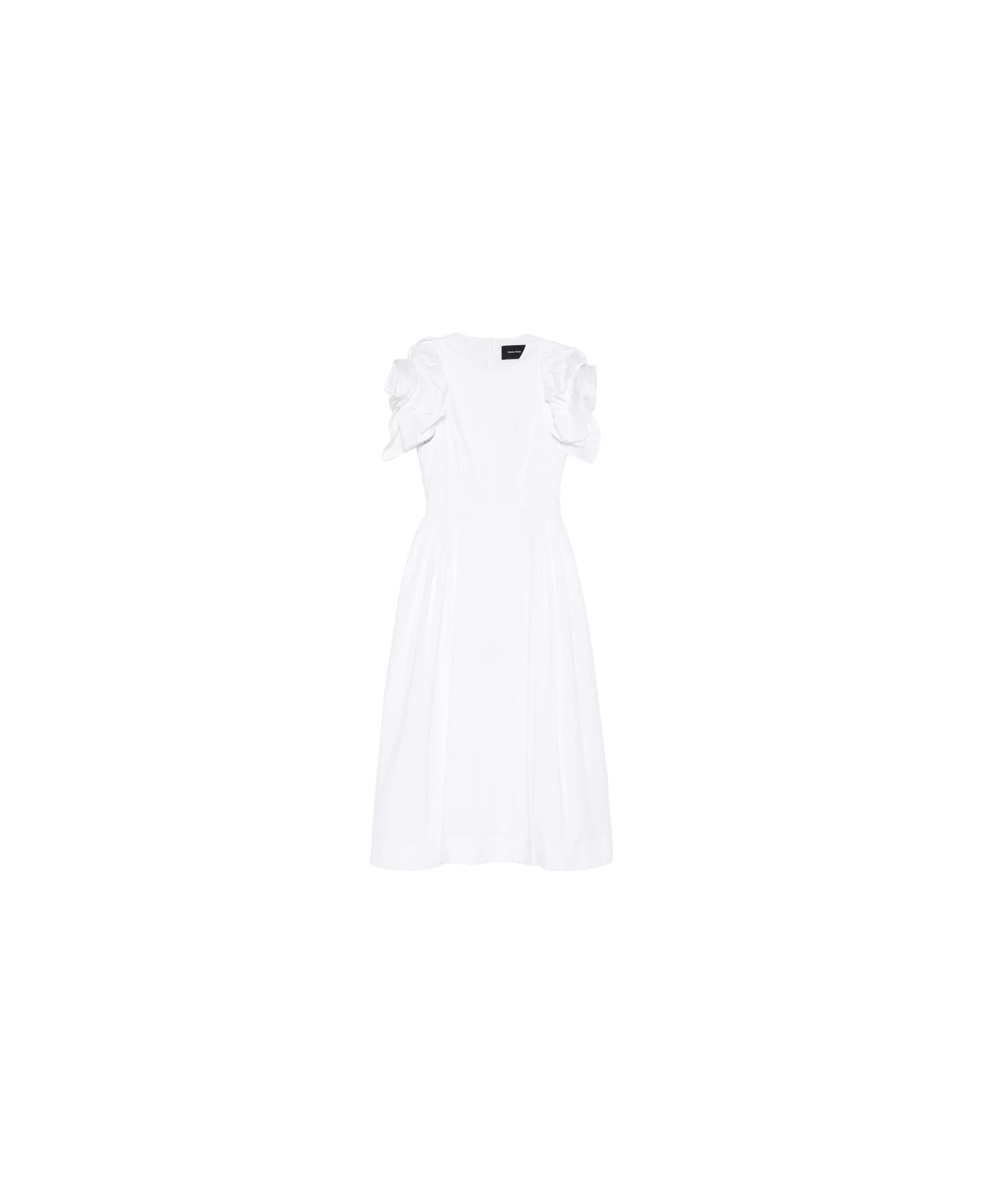 white ruffled sleeves A-line crew neck pleated skirt rear zip fastening