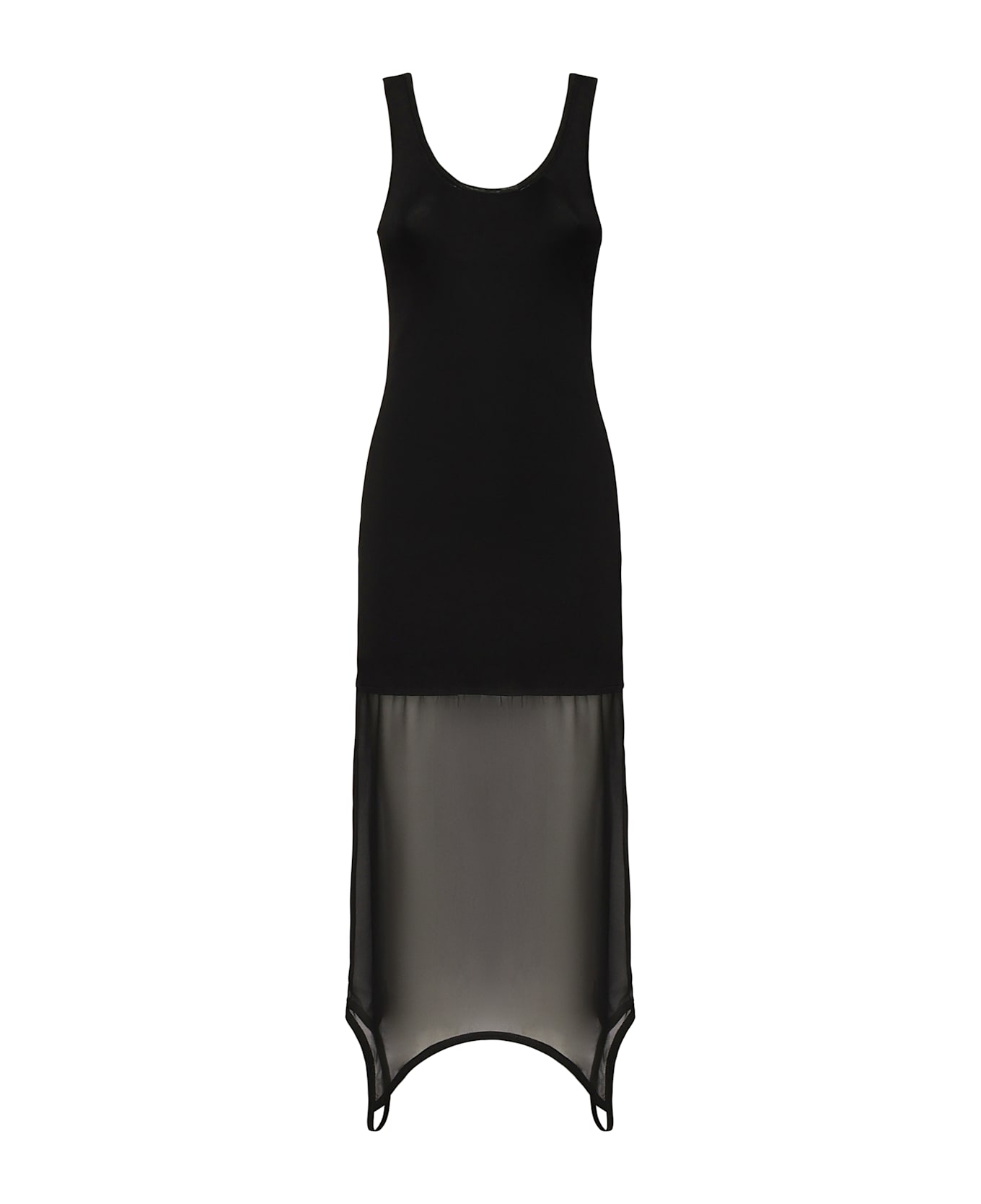 -Sleeveless -Tight fit -Asymmetric cut-out bottom -Round neckline at the front and back -The size shown in the photo is 40 IT -Made in Italy -Color: Black