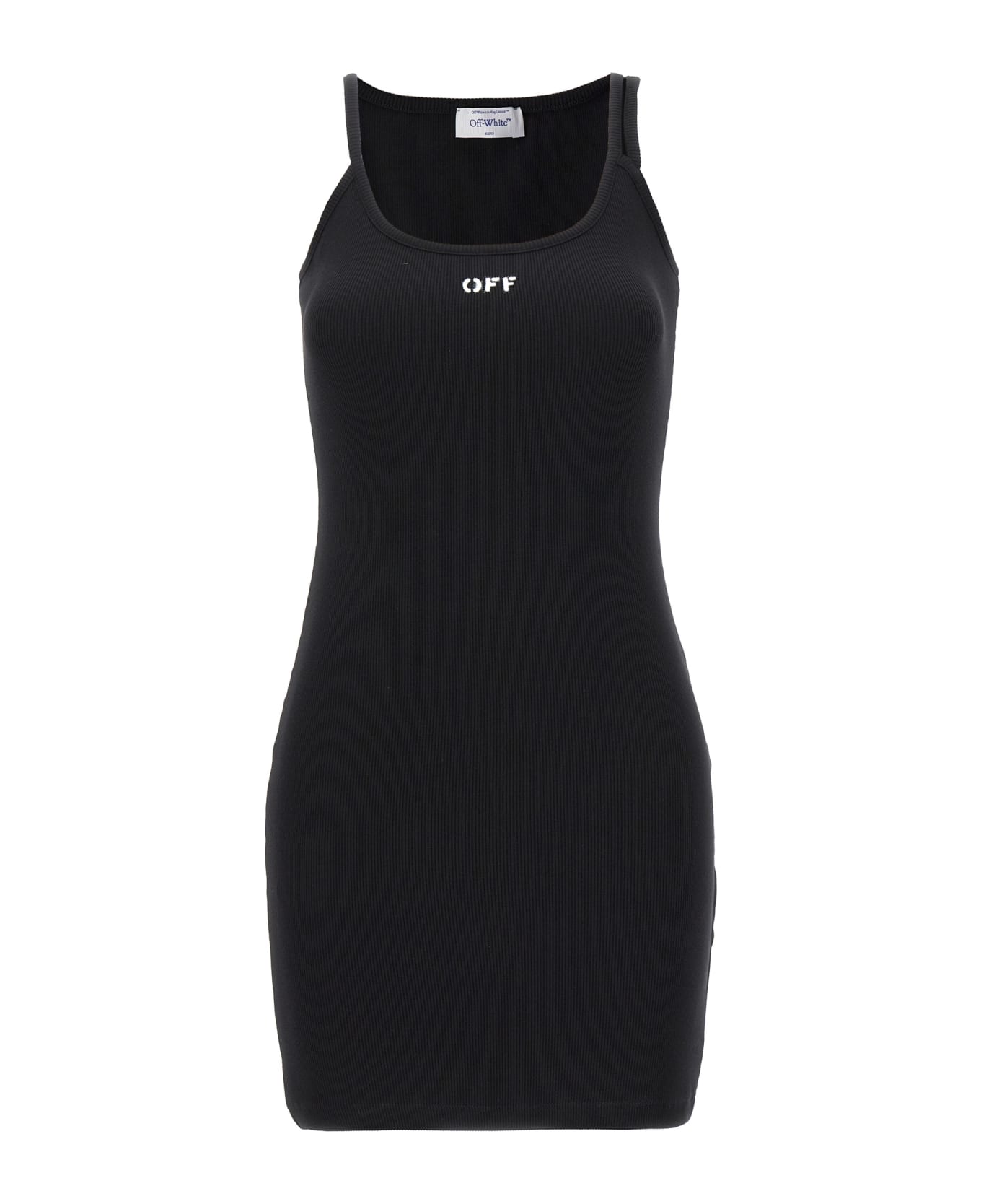 'Off' stretch cotton ribbed dress with front logo print and thin straps.