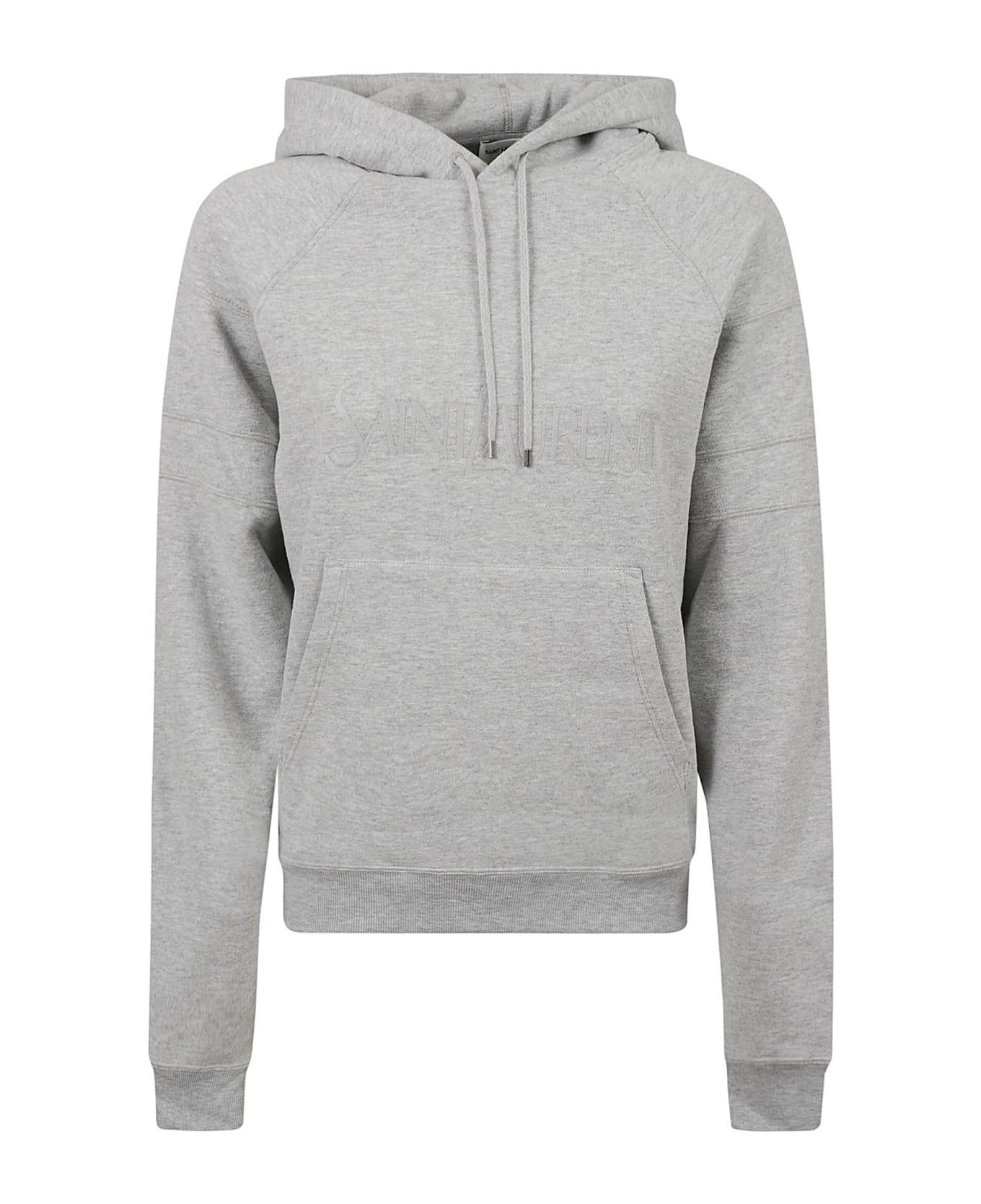 Rib Trim Logo Embroidered Hoodie from Saint Laurent Composition: 90% Cotton, 10% Polyester