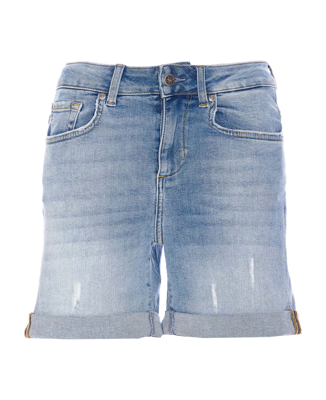 Liu Jo denim shorts, zip and buttons closure, 5 pockets, patch logo on the back, print on the back Composition: 92% Cotton, 6% Elastomultiester, 2% Elastane
