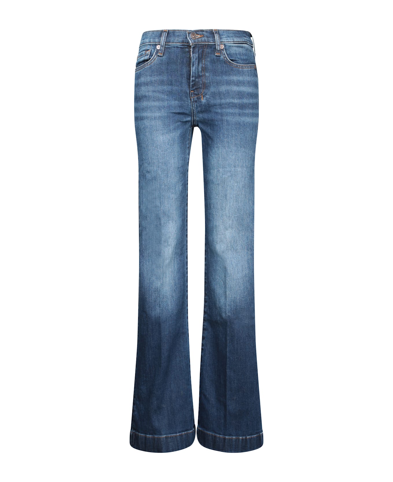 These flared jeans by 7 For All Mankind feature a classic cut reimagined for a contemporary look. The dark wash and light fading add a touch of vintage style, perfect for a casual chic outfit.
