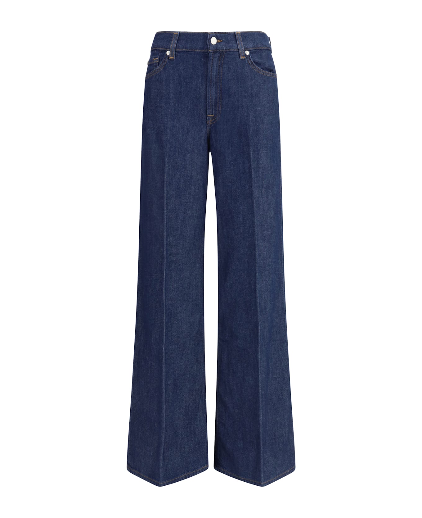 The lotta alona wide leg jeans by 7for offer a loose yet understated silhouette perfect for a relaxed, refined look. revamped in lightweight denim, they are made from a soft blend of modal and cotton that ensures lightness and comfort. the design is complemented by a classic five-pocket pattern and a zip-and-button front closure.