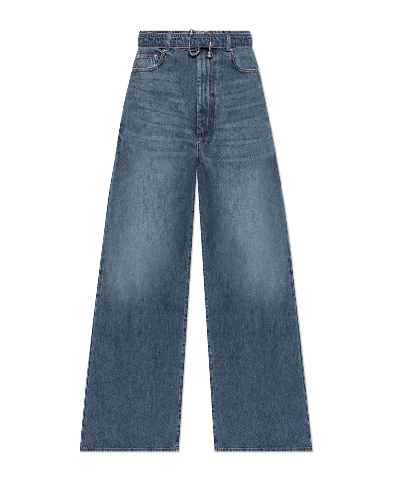 Experience a bold reinterpretation of classic denim with the Procida Jeans by SPORTMAX. Crafted from premium, non-stretch, medium-weight cotton denim, these jeans exude timeless sophistication with their rich blue hue and subtle front fading. The distinctive bootcut silhouette boasts a wide leg that maintains its voluminous shape from thigh to hem, accentuated by a high-rise waist that flatters and elongates the figure. Functional elegance is achieved through a traditional five-pocket construction, detailed with contrasting tawny topstitching along seams and pockets. The front closure showcases a unique silver-toned industrial buckle a signature touch featuring an engraved designer motif for an unmistakably modern finish. Each element reflects SPORTMAX's devotion to Italian heritage and innovative tailoring, establishing these jeans as a statement in elevated casualwear. Why choose this product? Expertly tailored for a refined, contemporary silhouette Distinctive industrial buckle with engraved designer detail Classic, non-stretch denim delivers enduring structure and comfort Striking contrast topstitching enhances artisanal construction Heritage craftsmanship from the iconic SPORTMAX brand
