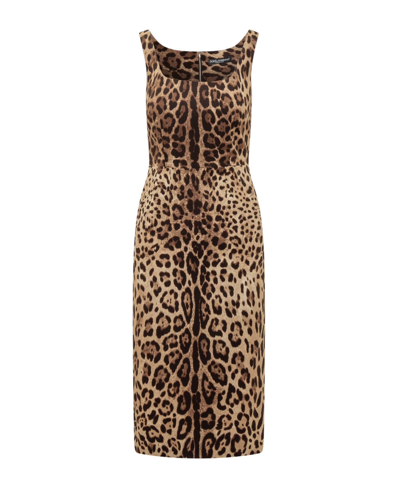 Midi sleeveless dress. Square neckline on the front. Thin straps. Zip back closure. Slit back. Made of charmeuse with leopard print. Composition: Outside:, 95% Silk, 5% Elastane Lining:, 97% Polyester, 3% Elastane