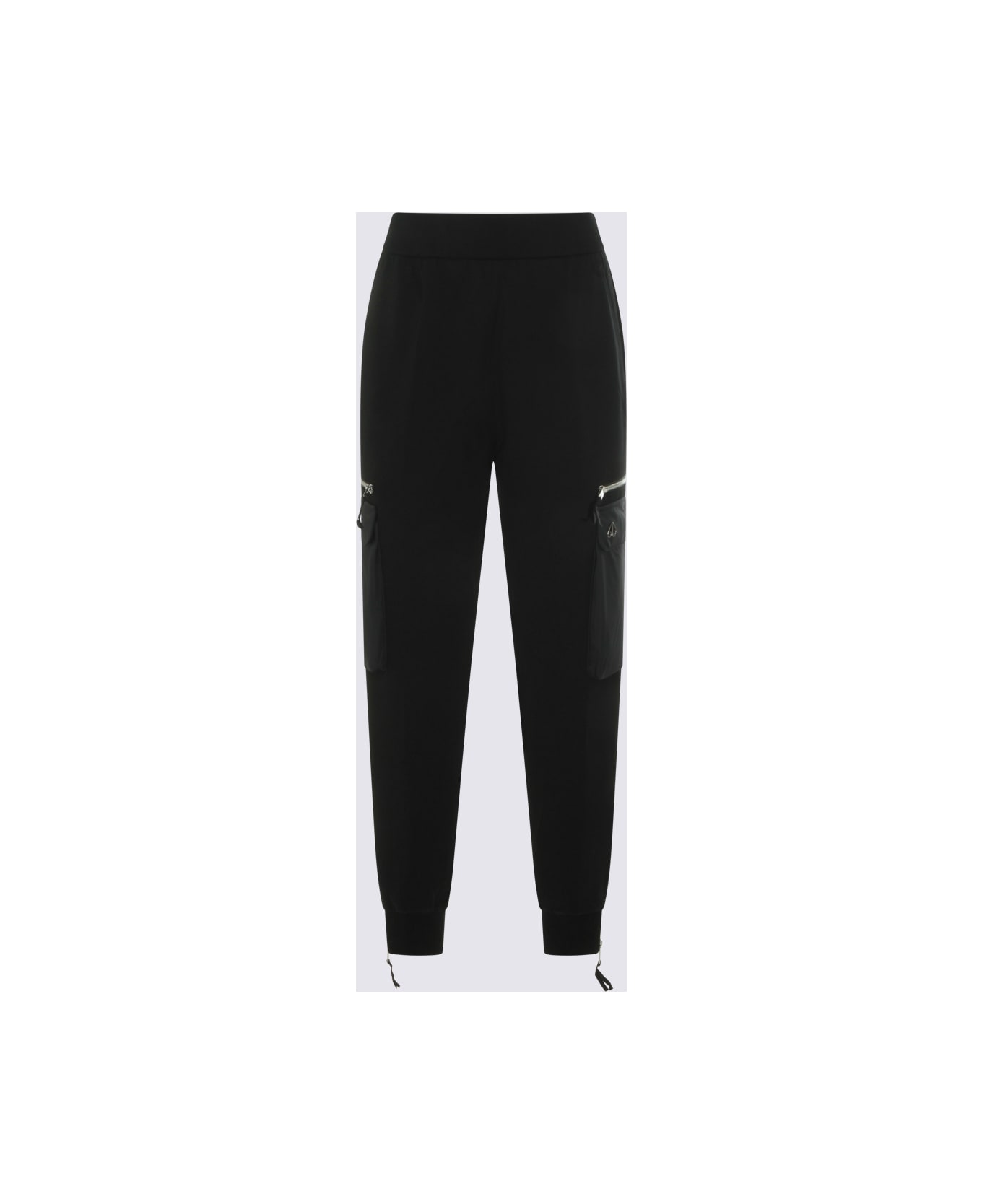 Black cotton pants from Moose Knuckles featuring elasticizated waist, lateral pockets, silver tone hardware and ribbed cuffs.