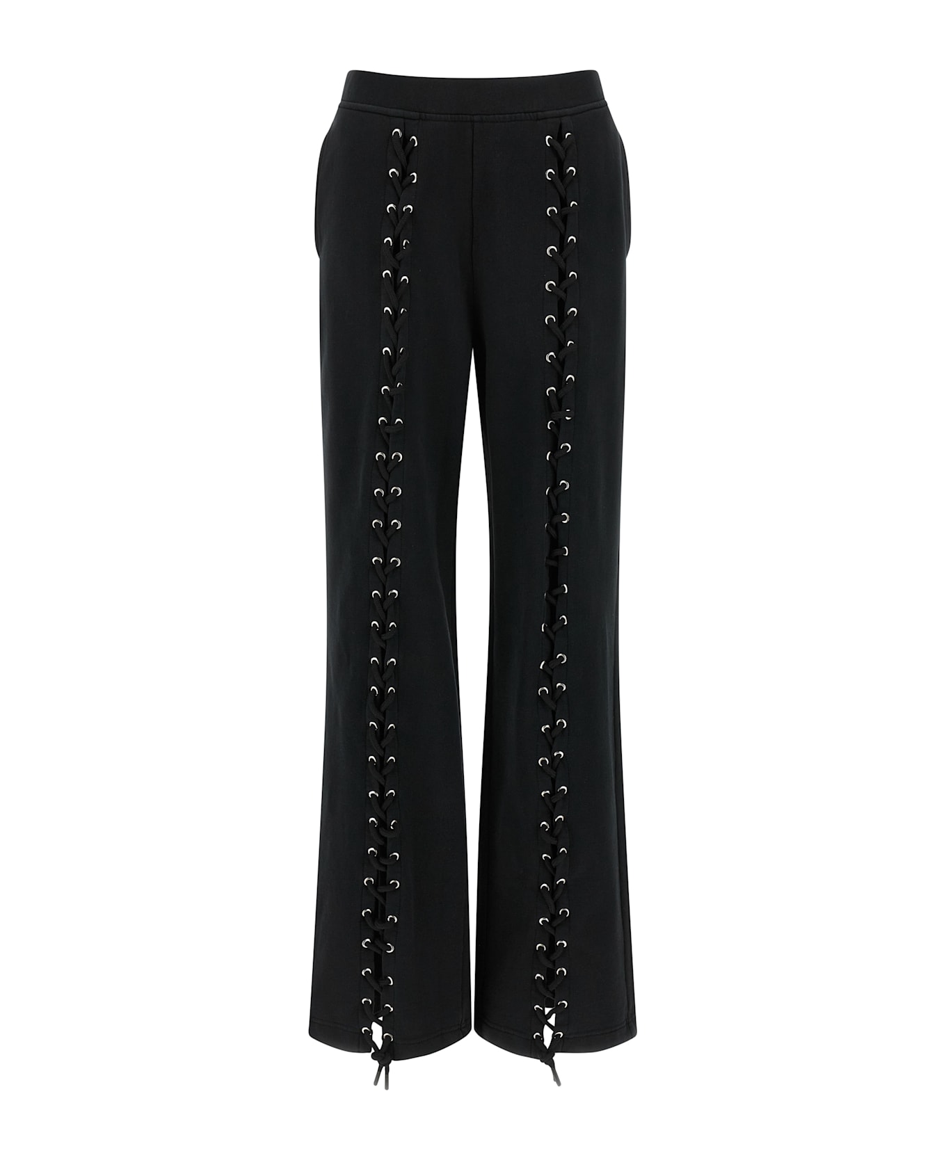 'Lacing' slightly fleece cotton joggers, high-waisted model with front opening and laces, elastic waistband, pockets. SUSTAINABLE: This product is made of organic cotton.