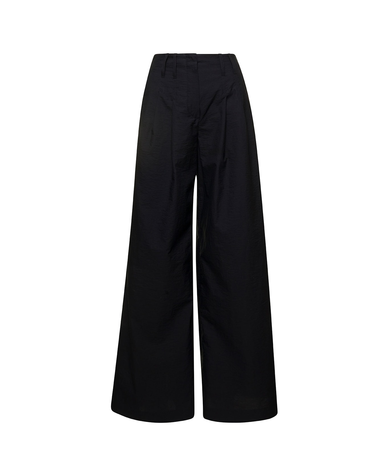 TrousersHigh waist Belt loopsConcealed zip front fastening Two side slit pockets Two rear welt pockets Wide leg Black Cotton blend Regular fit Composition: