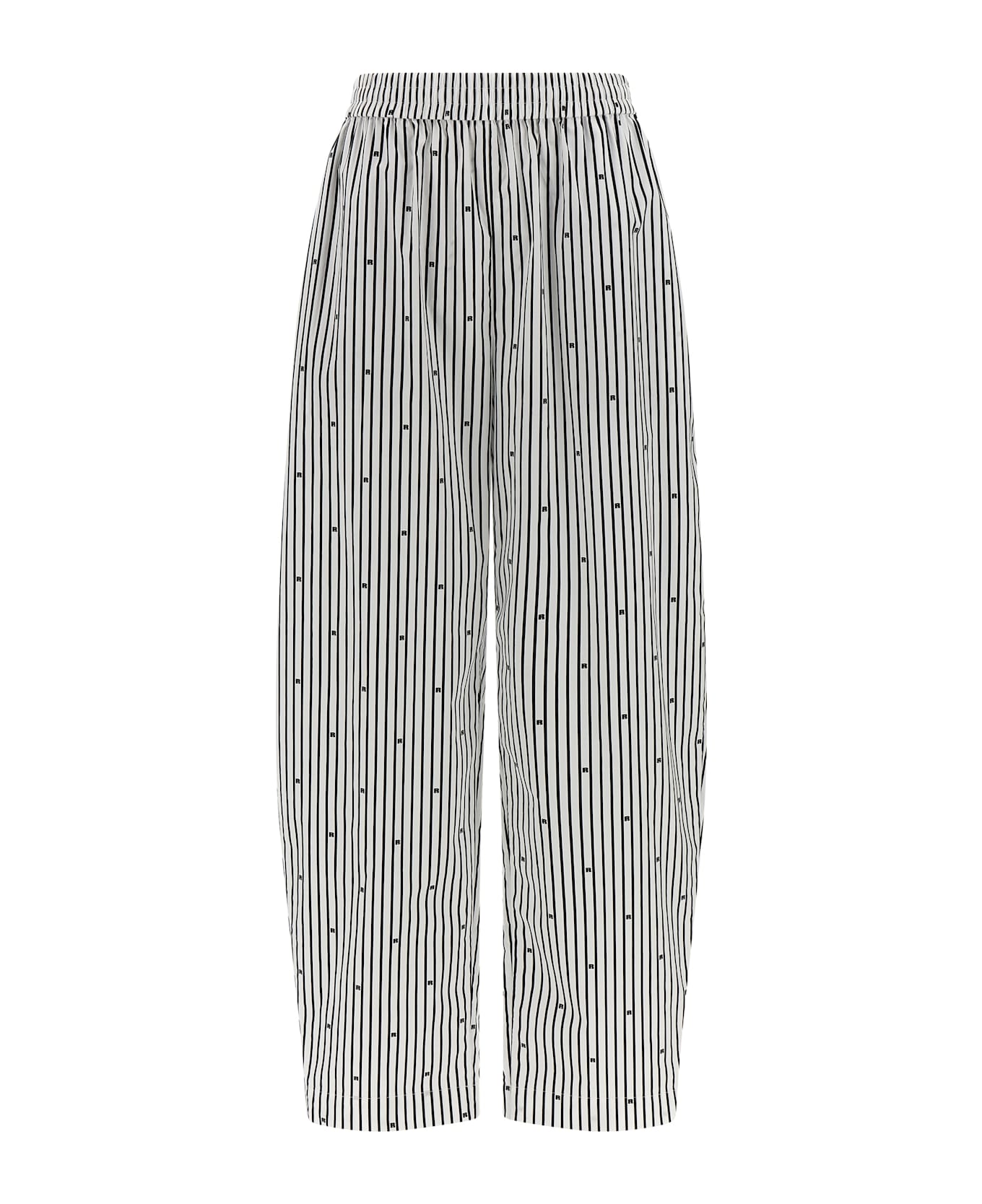 'Poplin Tapered Striped' striped cotton poplin pants with all-over logo, wide straight leg, elastic waistband, pockets.