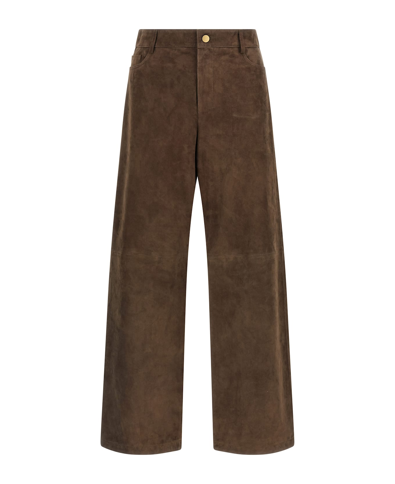 SmmFulmine' suede pants with panel construction, wide and straight leg, mid waist, front zip and button closure, five pockets, tone-on-tone back logo tag. Composition: 100% lamb leather (Ovis aries)