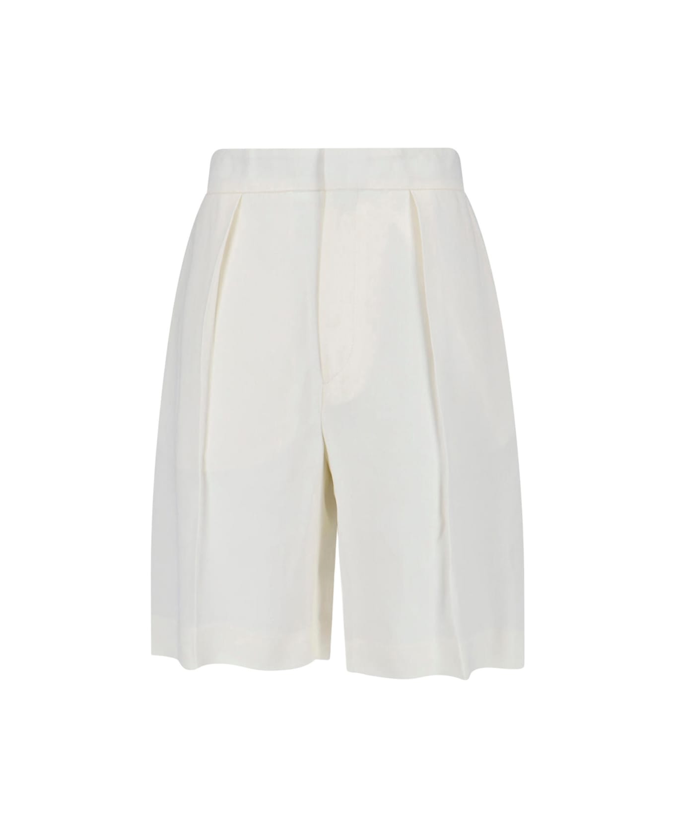 Victoria Beckham tailored shorts in white viscose, mid waist, zip and hook closure, front pin tucks, two side slanted pockets, two back welt pockets, straight leg.