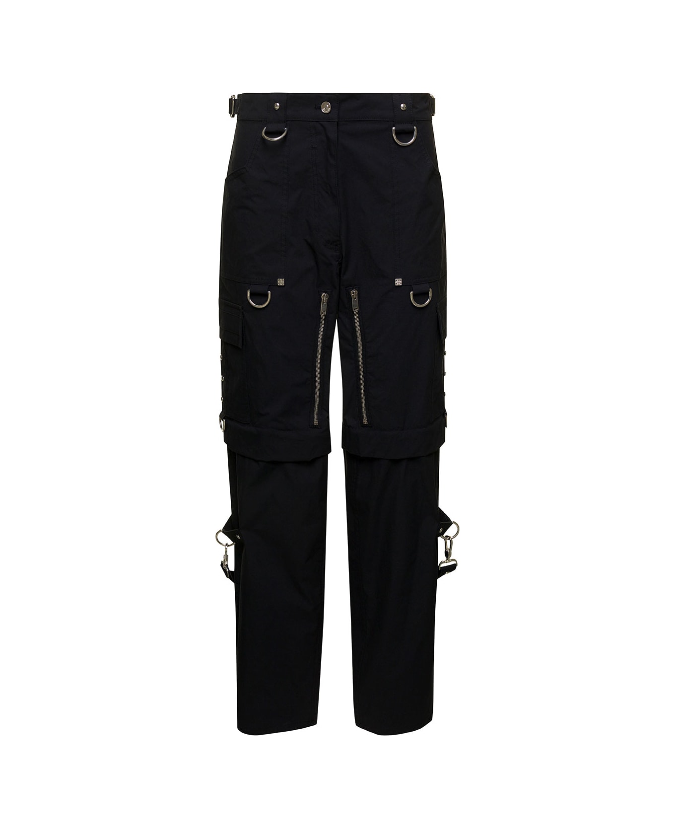 Black Two In One Detachable Cargo Pants With Suspenders In Wool And Mohair Woman