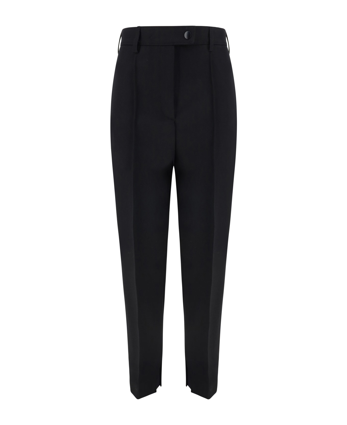 Fleece wool pants by prada, front snap button closure, metal hook and concealed zipper, two side welt pockets with zipper, waistband loops. Composition: 1% % Elastane, 2% % Nylon, 97% % Fleece Wool