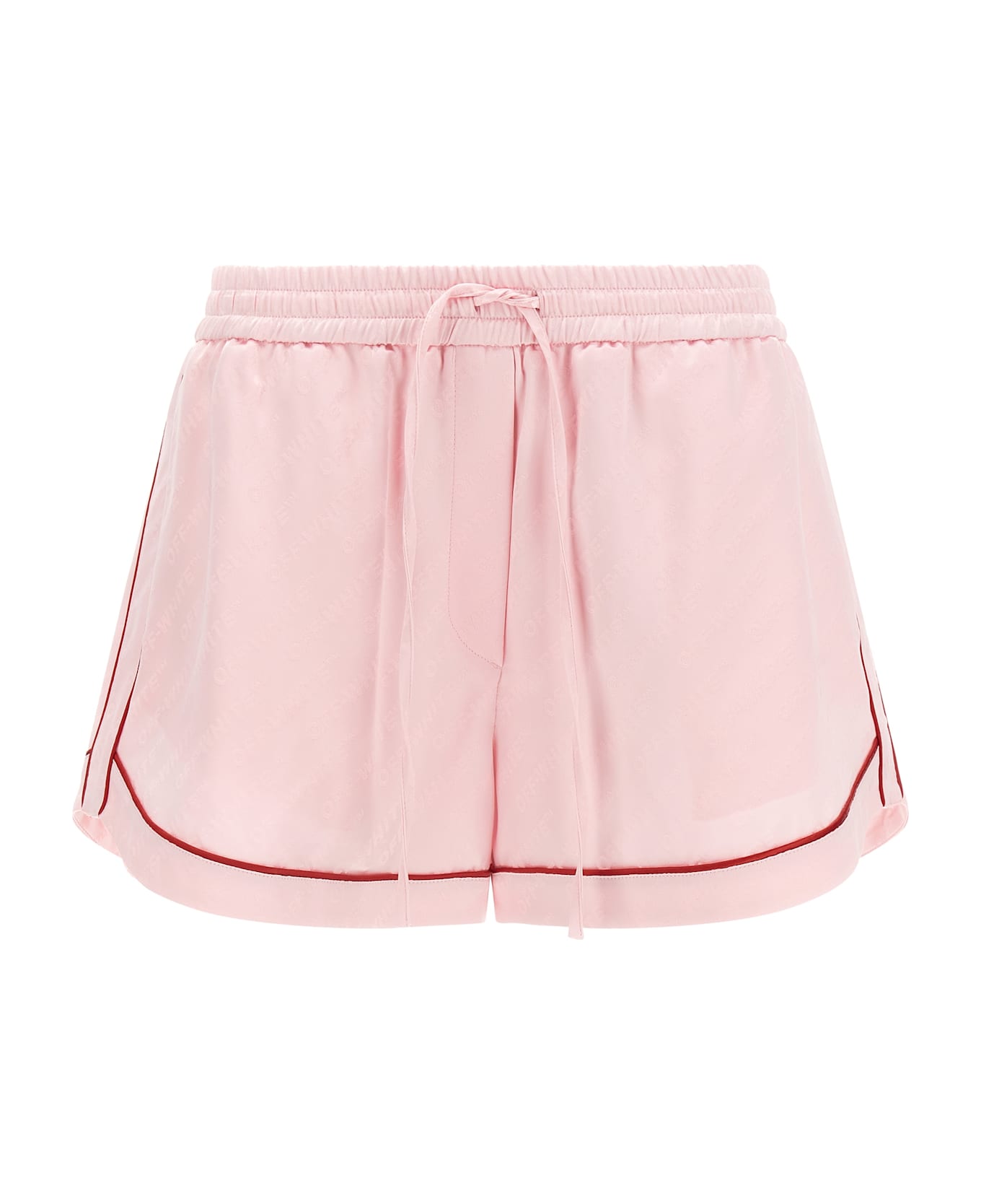 'Jacquard Satin Pajama' shorts in jacquard satin with all-over logo with solid color contrast piping, pajama model, drawstring elastic waistband, wide leg, pockets.