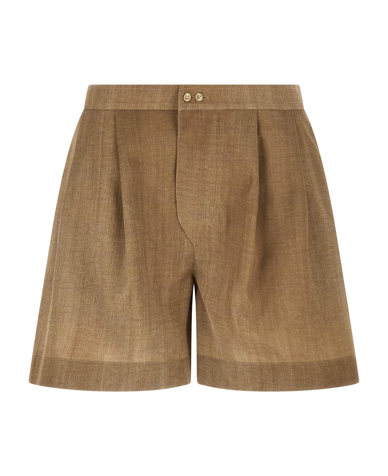 Marocain shorts with sand denim print, double front pincer, zip and button closure, elastic waistband at the back, pockets.