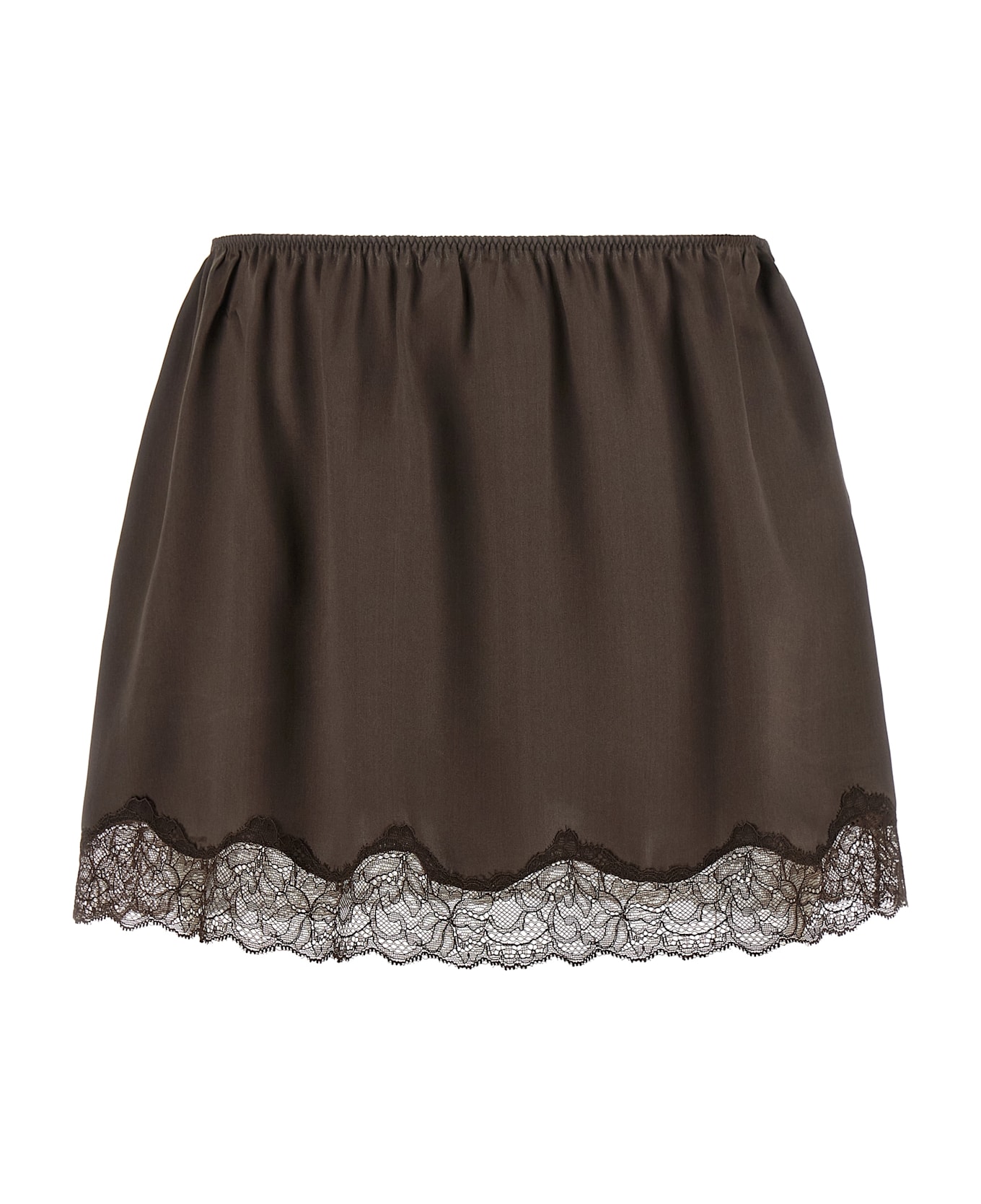 11' silk miniskirt with tone-on-tone lace insert on the hem and elastic waistband. Composition: 100% silk