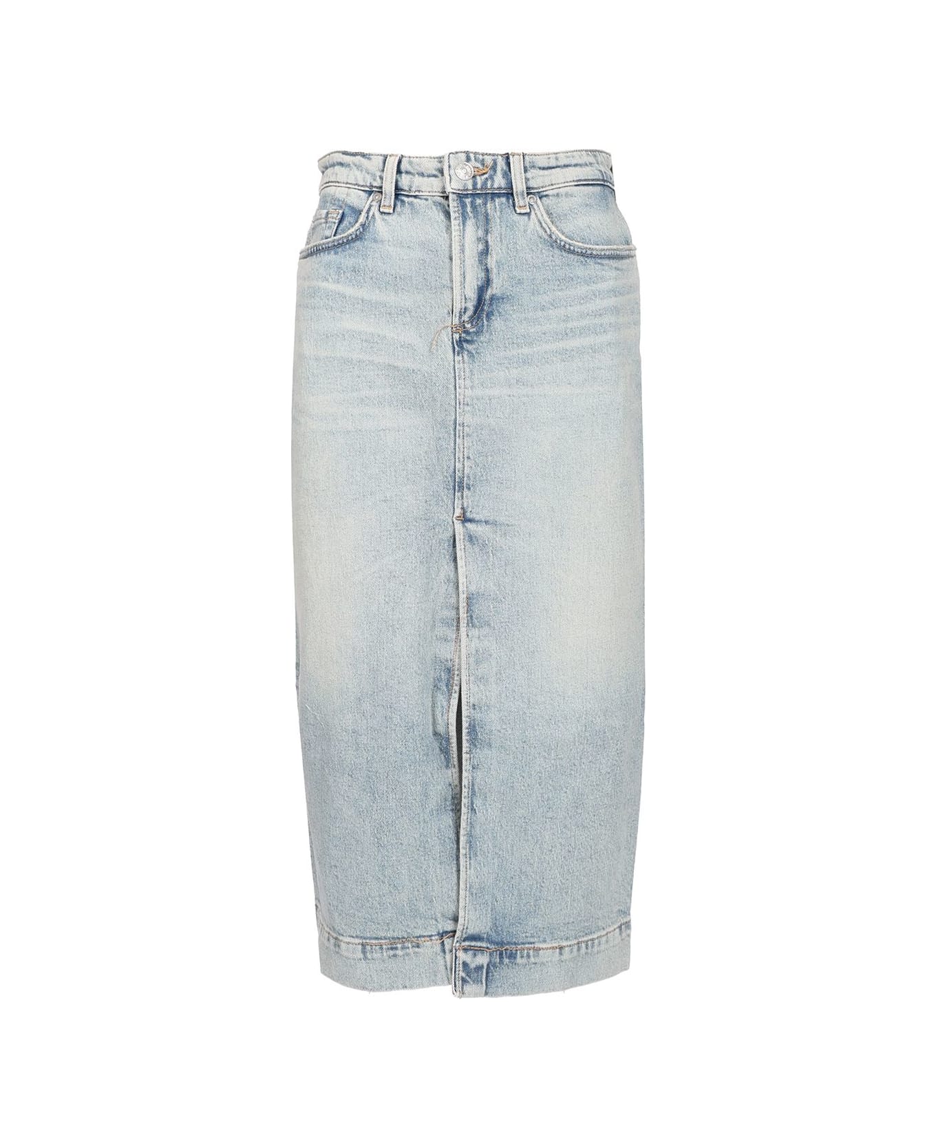 "Amber" skirt in light blue denim from 7 For All Mankind, featuring a midi length and a front slit.
