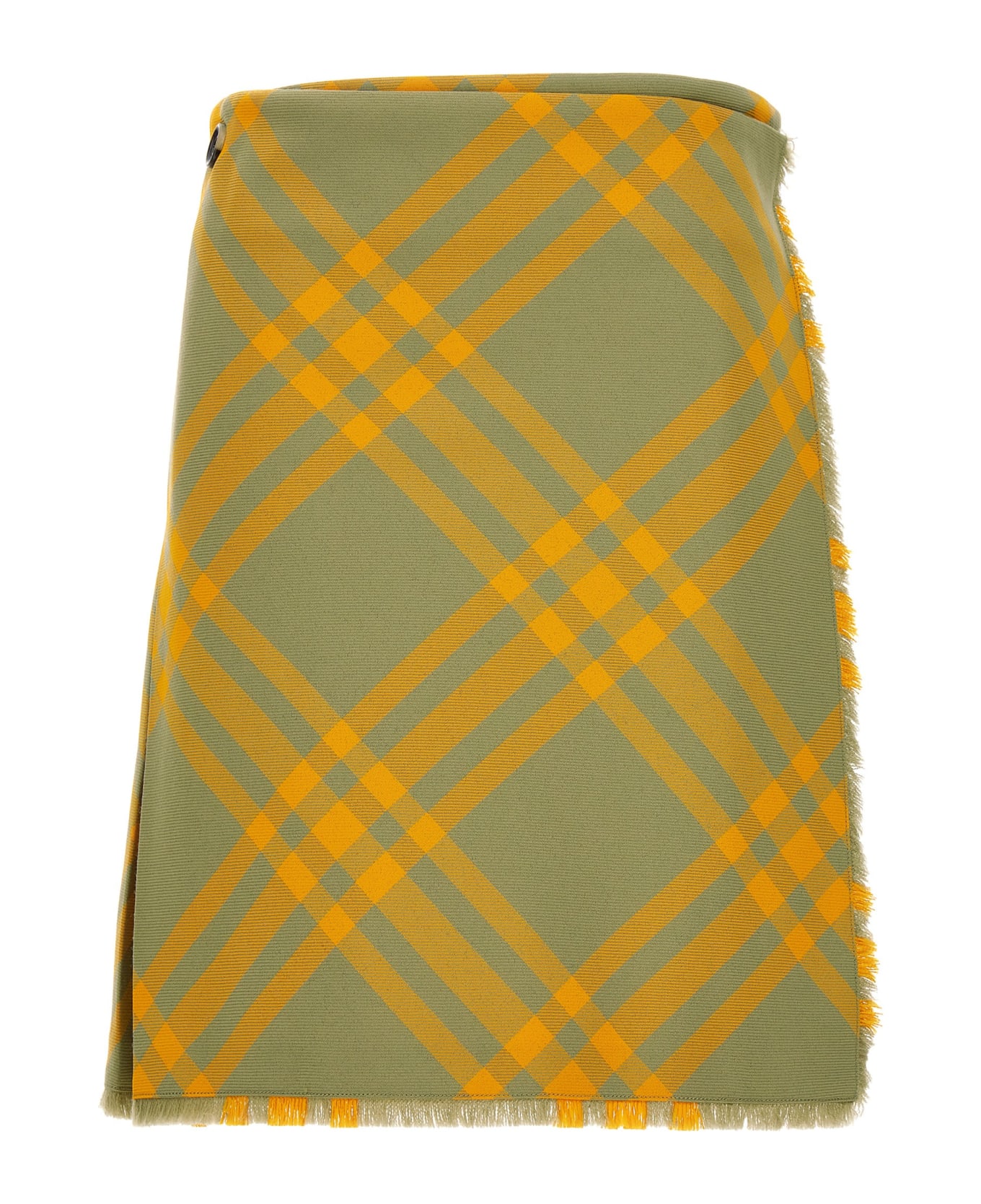 Kilt skirt in wool blend with check print, fringe detail, side button closure and buckle. Composition: 67% polyester 33% virgin wool