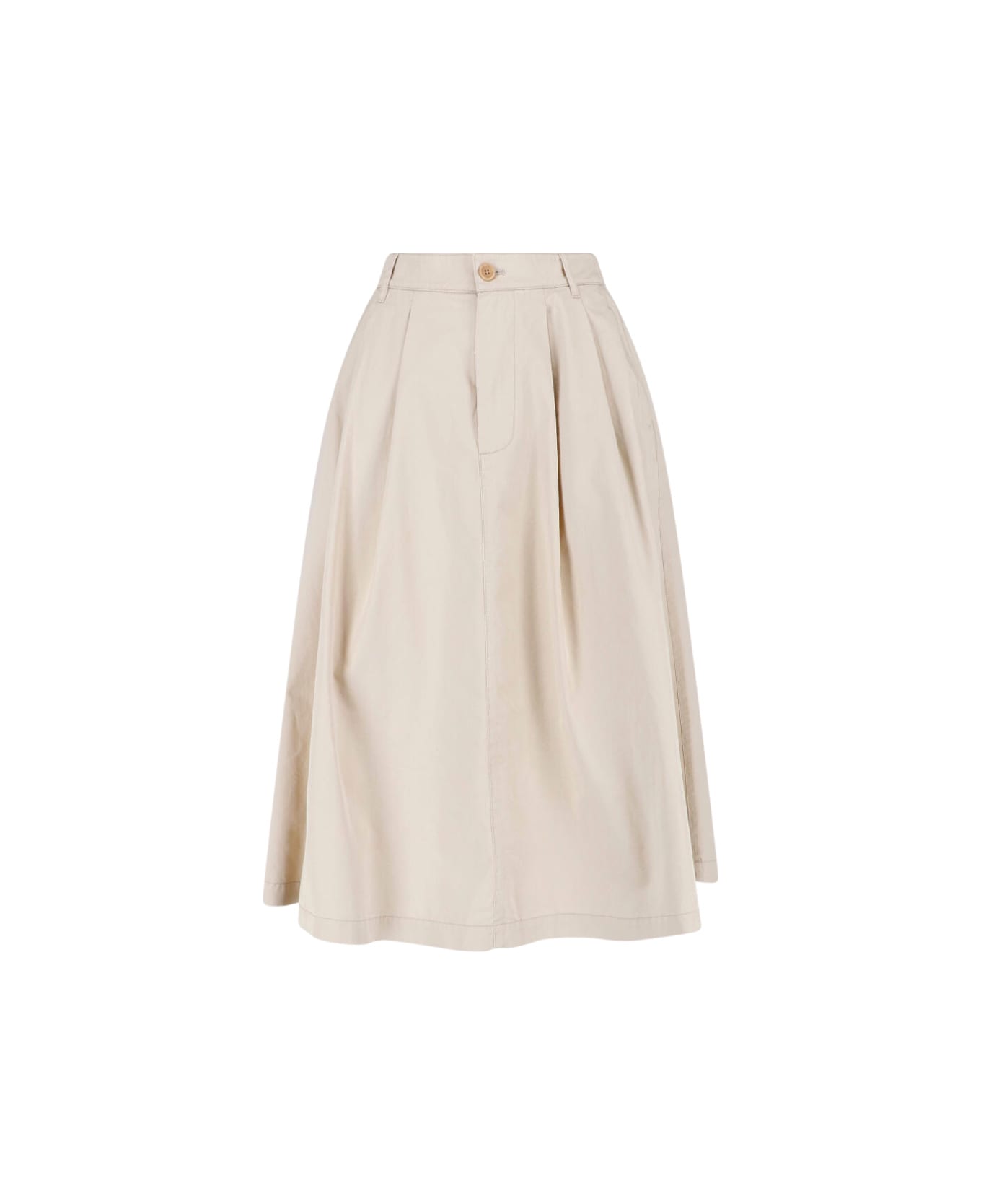 - Cotton midi skirt in beige by Aspesi - Button and zip closure - Belt loops - Two side pockets - Two back button pockets