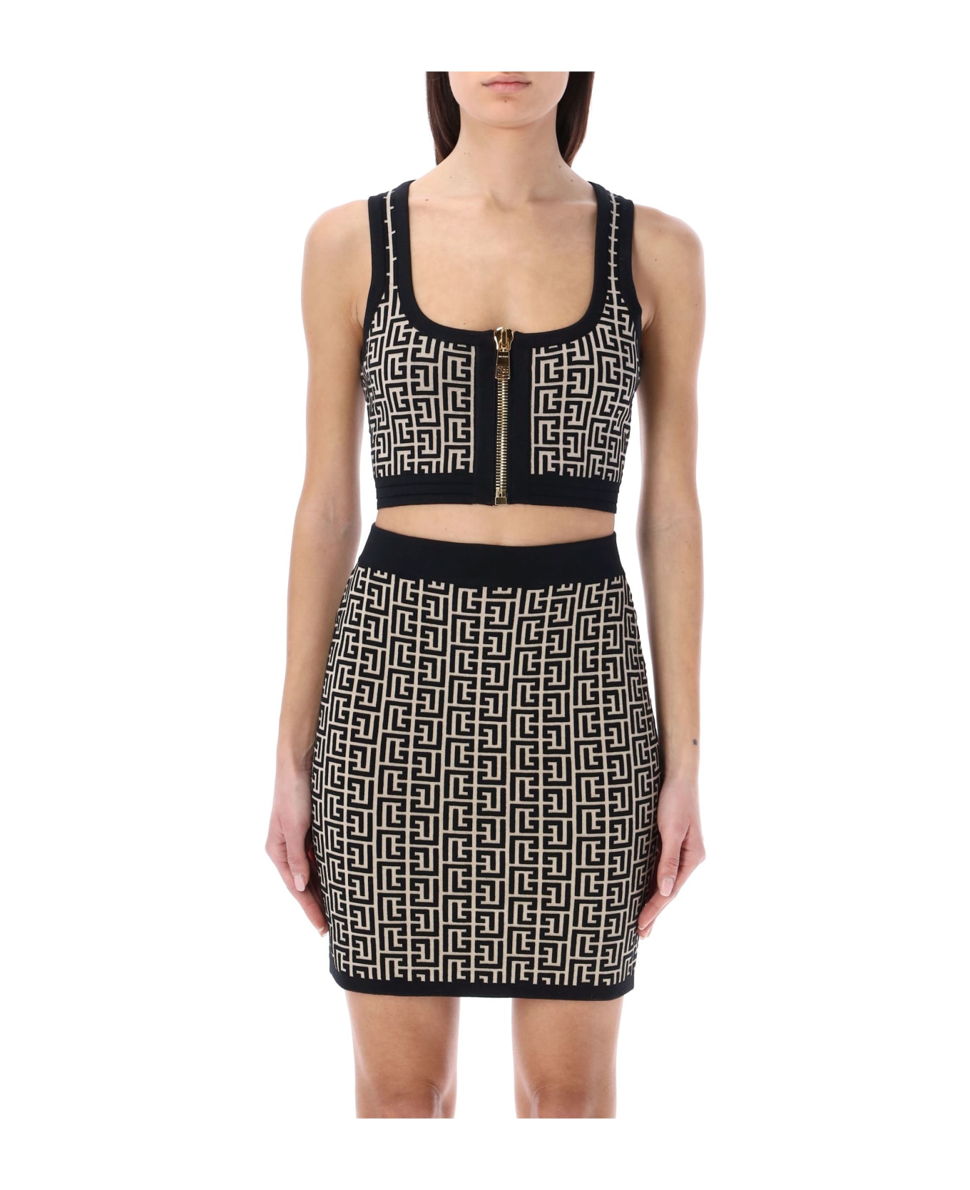 Wool Blend Monogram Knit Crop Top By Balmain. Featuring: