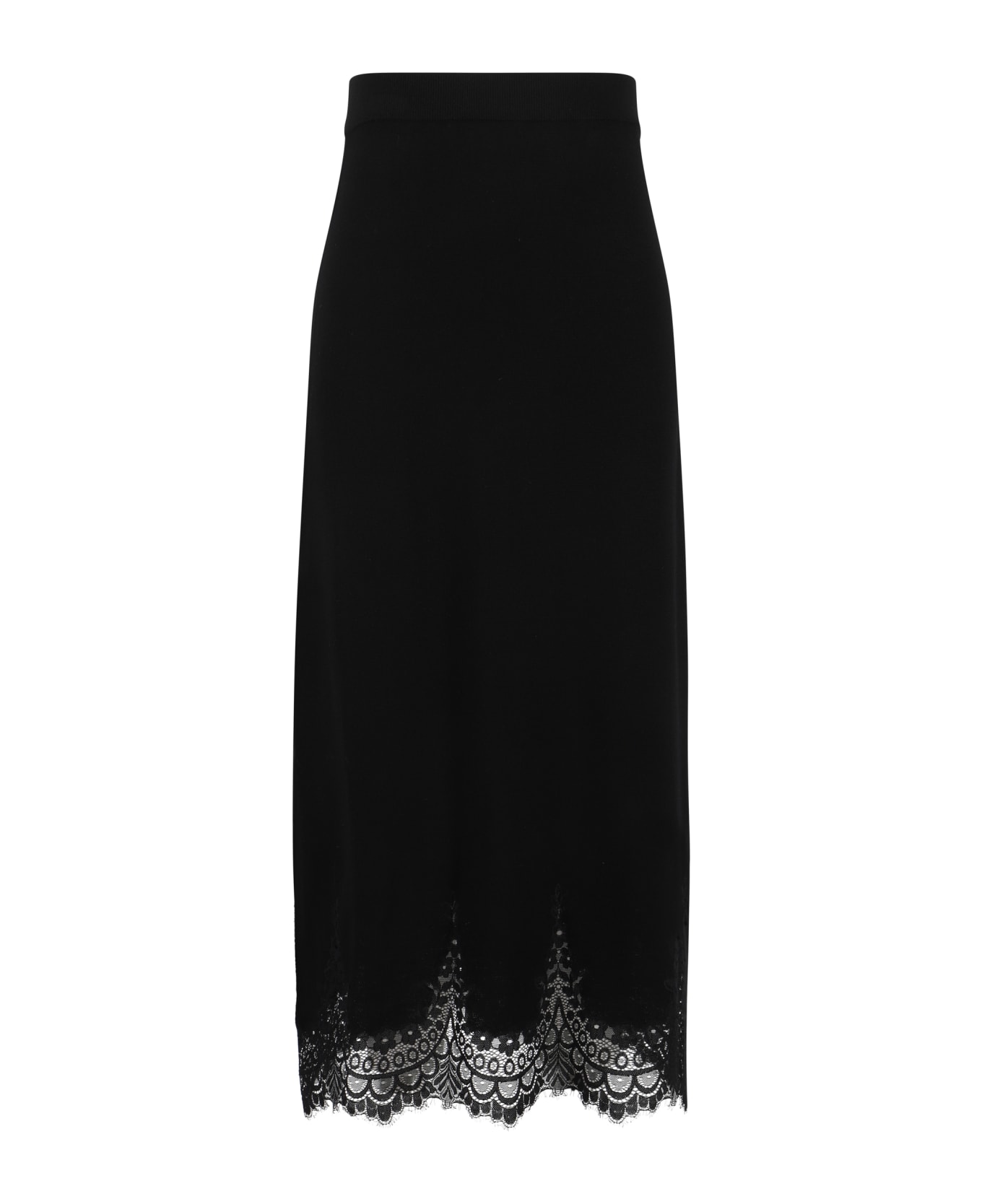 Wool natura skirt by zimmermann, elastic ribbed waistband, asymmetrical semi-transparent lace hem, monochrome pattern, regular fit.