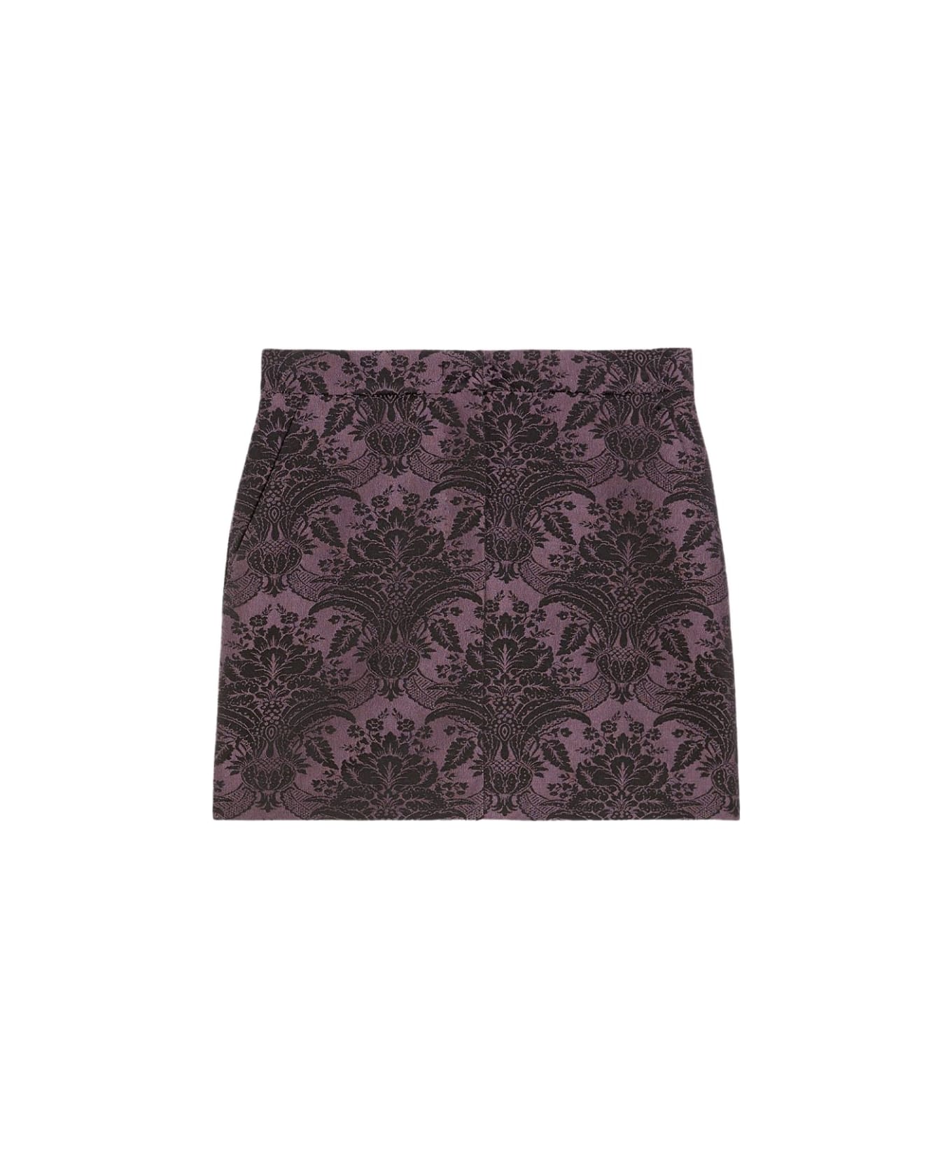 Straight-line miniskirt, made of precious technical wool with an all-over jacquard brocade design.
