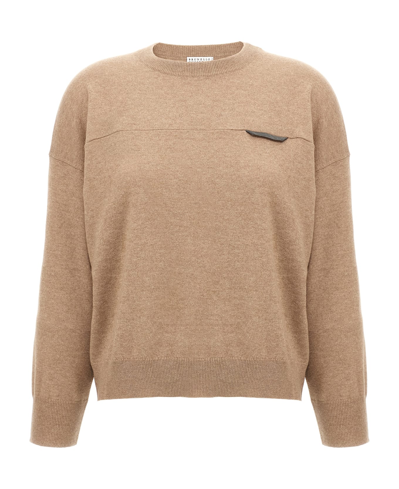 Cashmere sweater, front Monile detail, crop model, crew neck, long sleeves with cuffs and dropped shoulder. Composition: 100% cashmere